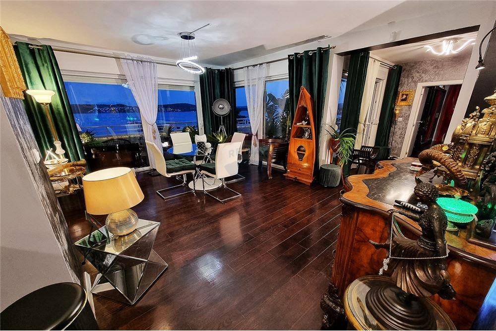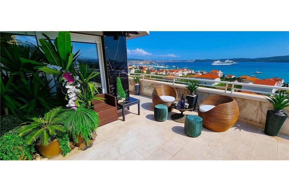 Ovaj stan daje iznimno lijep, širok pogled na more koji se proteže na Kaštelanski zaljev i Split, te Trogir, trogirski zaljevi otok Čiovo.