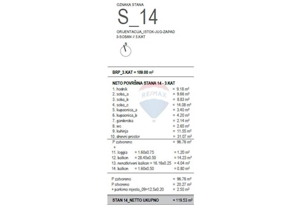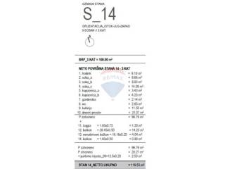 Prodaje se stan na trećem katu moderne stambene zgrade u izgradnji završetak radova planiran do kraja 2026. godine. Zgrada ima ukupno 14 stanova i gradi se po visokim standardima (energetski učinkovita fasada, PVC stolarija s troslojnim staklom, kvalitetna keramika, podno grijanje u kupaonicama, klima uređaji).
