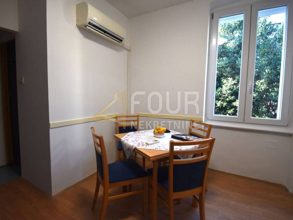 L'appartamento è arredato, dotato di aria condizionata, e le finestre sono in PVC e legno.
