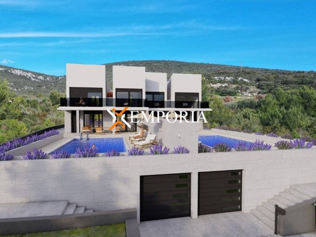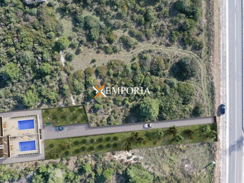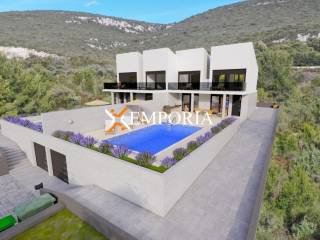 Moguće plaćanje kriptovalutama (BitCoin, Ethereum).Vila je koncipirana kao dvojni objekt.U prizemlju svakog objekta nalazi se prostrani dnevni boravak s kuhinjom i blagovaonicom, ulaz, WC, prednja i stražnja natkrivena terasa. Obje terase imaju mogućnost postavljanja ljetne kuhinje s roštiljem. Ispred terasa nalazi se zaseban bazen s predivnim pogledom na more.Stubište vodi na prvi kat gdje se nalaze dvije spavaće sobe od kojih svaka ima vlastitu kupaonicu te izlaz na terasu. Svaki objekt ima svoju garažu.Zemljište je udaljeno svega 20 km od Zadra i zračne luke Zemunik. Nalazi se 17 km od Luke Gaženice, 10 km od Marine Dalmacije i od autoputa je udaljeno 13 km. Biograd na Moru, grad i luka, smješten je 9 km južno od ovog zemljišta, na malom poluotoku i kopnu. Malo slikovito mjesto Sveti Filip i Jakov smjestilo se na obali Pašmanskog mora, između Zadra i Biograda, a od zemljišta je udaljen svega 4 km.