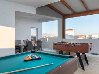 Svaka prostorija je klimatizirana (ukupno 7 klima uređaja), podno grijanje sprovedeno također u svim prostorijama spojeno na dizalicu topline, dimjjak uz mogućnost postavljanja peći na drva ili pelete, unutarnji grijani bazen površine 20m2, alu stolarija, komarnici.