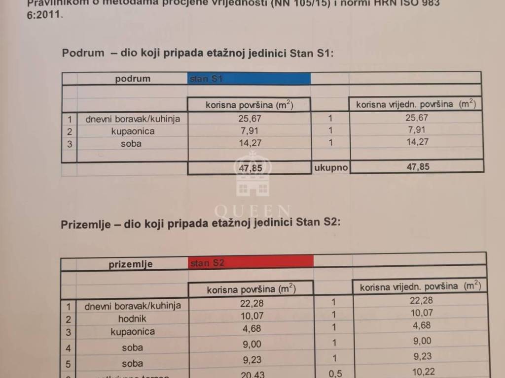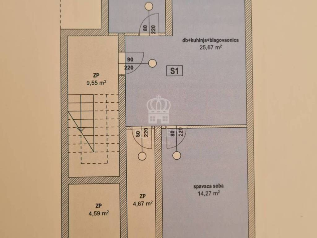stan s1) površine 47,85m2 koji se sastoji od kuhinje spojene sa dnevnim boravkom i blagovaonicom, kupaonice i bračne spavaće sobe