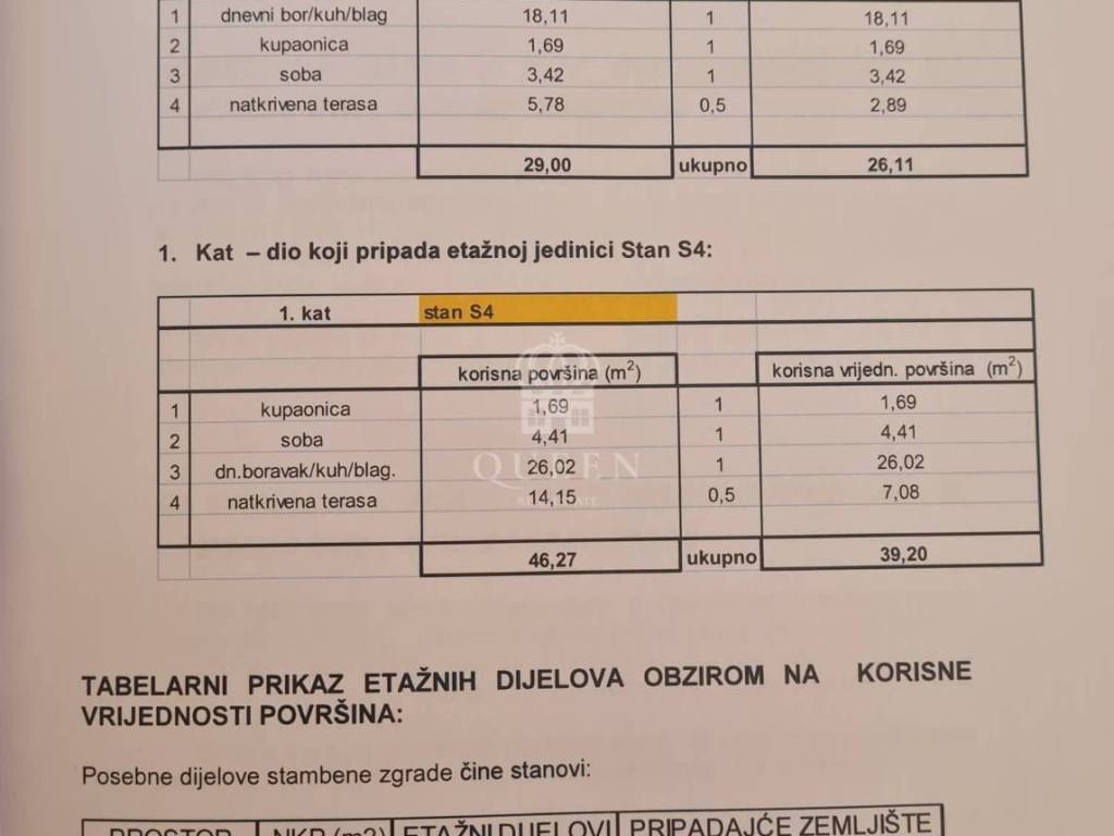 stan s4) površine 46,27m2 koji se sastoji od kuhinje spojene sa dnevnim boravkom, kupaonice, sobe, natkrivene terase.