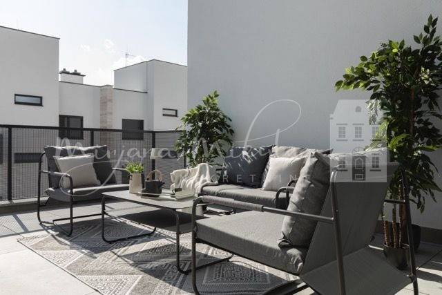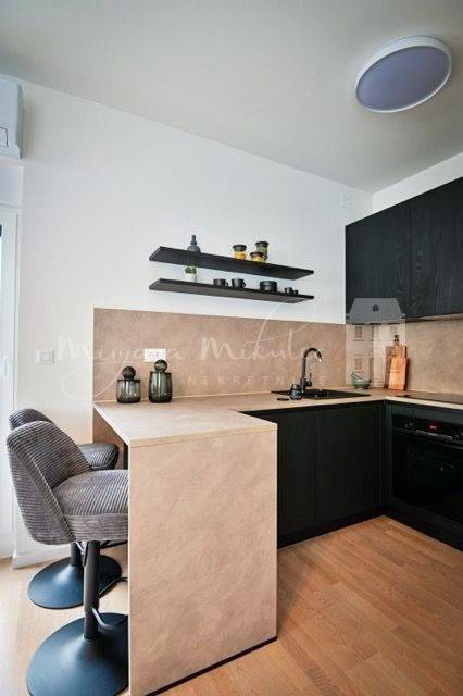 Ovaj potpuno namješteni stan površine 71m2 se sastoji od dvije spavaće sobe, kuhinje, blagovaone i dnevnog dijela otvorenog koncepta, kupaonice, privatnog stubišta za pristup etaži krovne terase, terase površine 8m2, druge terase sa izlazom iz dnevog dijela stana veličine 21m2, krovne terase 58m2 i parking mjestom veličine 12,50m2.