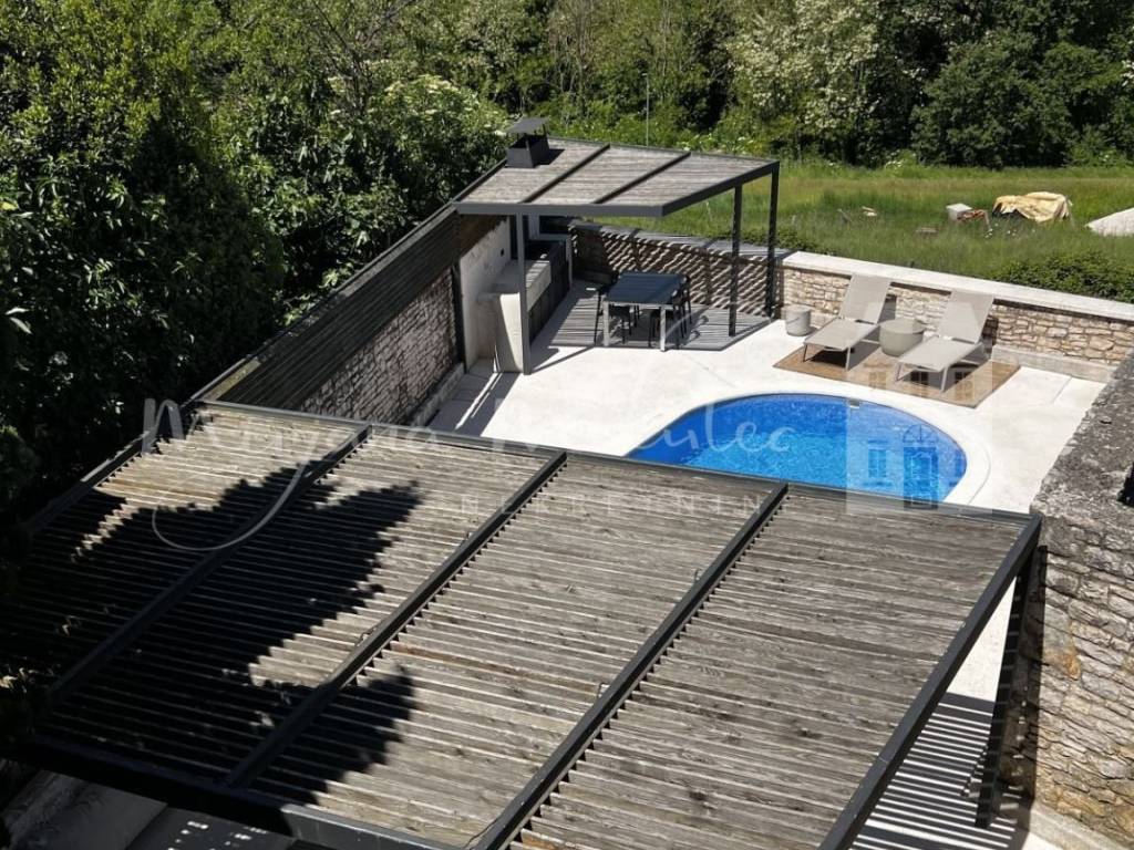 Prodaja, Istra, Tinjan - u malom pitoresknom mjestašcu Brčići, smjestila se kamena vila, katnica, površine 120m2 s bazenom i prelijepim panoramskim pogledom.