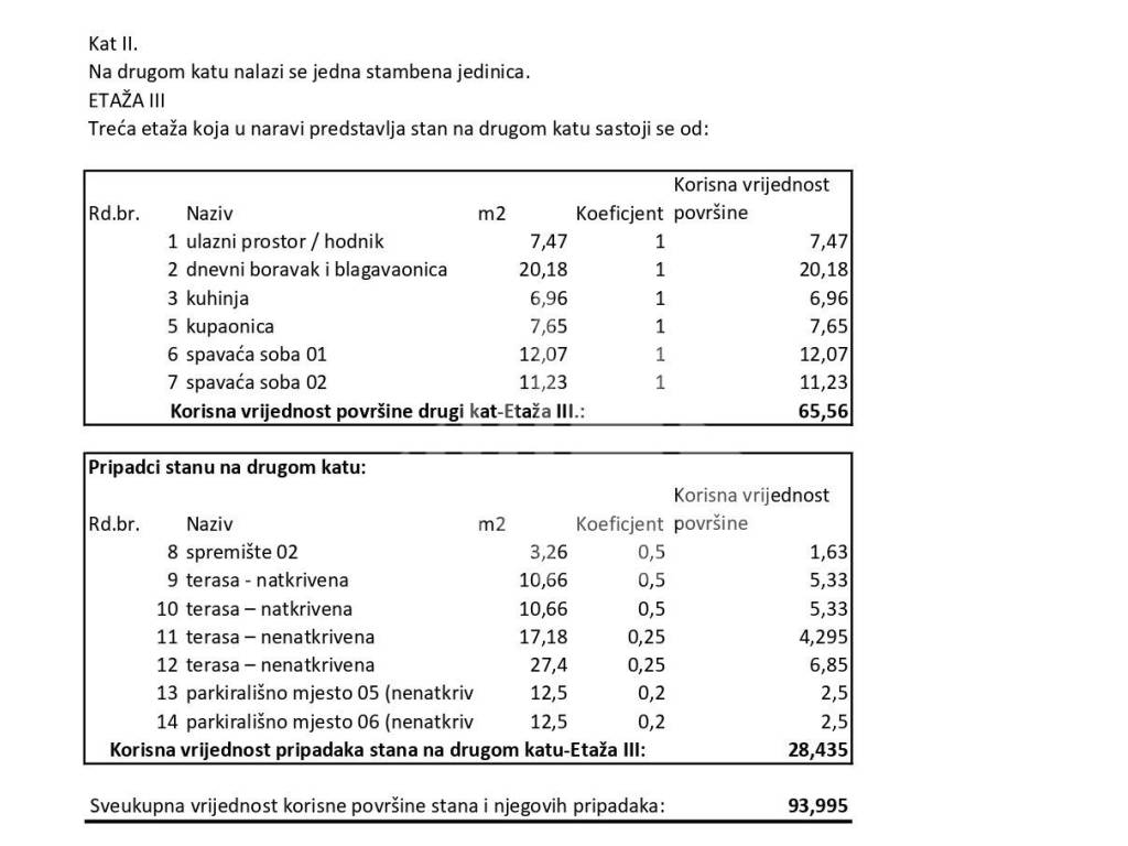 Sveukupna vrijednost korisne površine stana sa svim njegovim pripadcima je 93,99 m2.