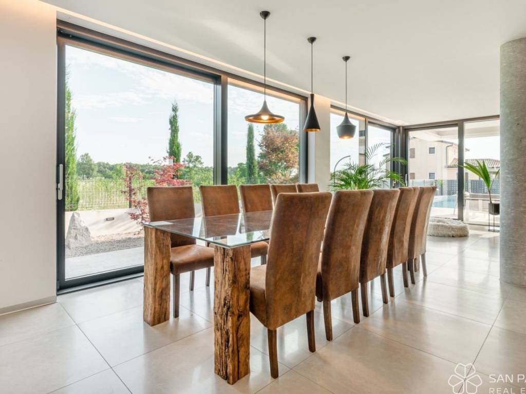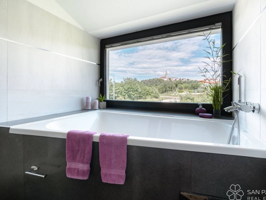 The villa can accommodate 10 guests and is located on a small hill with a beautiful view of the sea and the green zone and is located 10 km from the sea and the city of Porec.