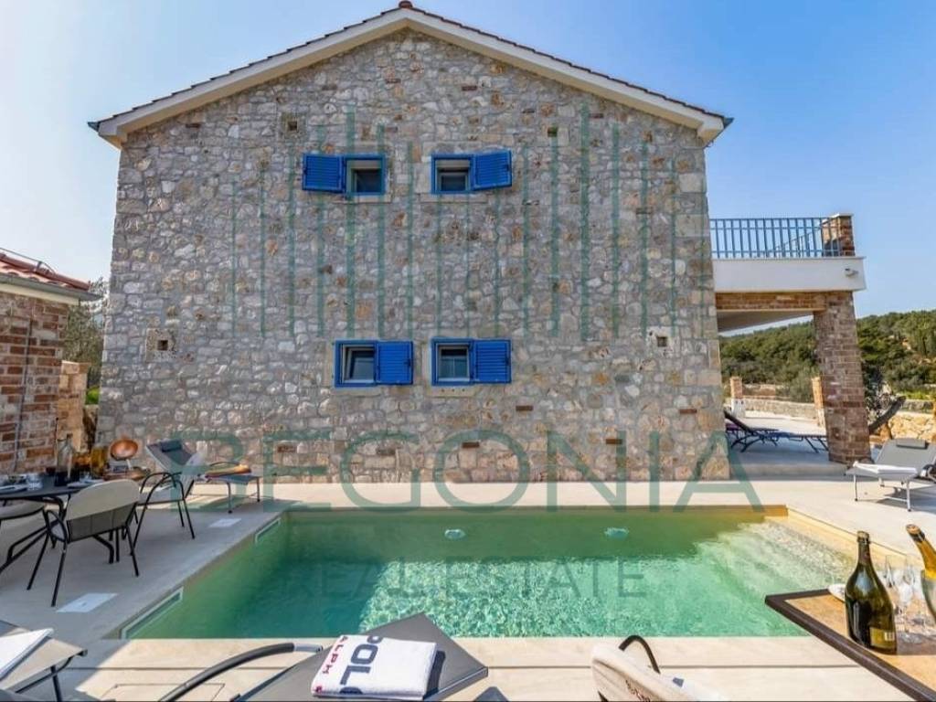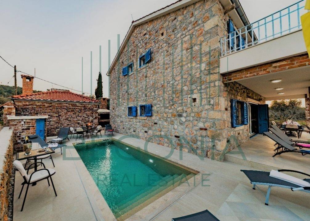 Prodaje se luksuzno namještena i opremljena kamena villa na Pašmanu. Sastoji se od kuhinje i blagovaone, dva dnevna boravka 80 m2 i 60 m2, pet spavaćih soba od kojih svaka ima svoje kupatilo, dva wc-a, ljetne opremljne kuhinje sa wc-om i klimom, dvije prostrane terase od kojih svaka ima 30 m2, predivne okućnice sa bazenom, mjestom za roštiljanje i parkingom. Grijanje je izvedeno uz pomoć klima jedinica (ukupno 8 ) te komina u jednom dnevnom te peći na drva u drugom dnevnom boravku, Kuća ima predivan panoramski pogled na morski arhipelag a od uređene plaže i mora udaljena je 100 m.