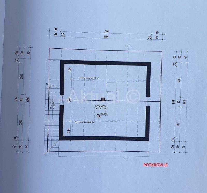Prizemlje se sastoji od kuhinje sa dnevnim boravkom, ostave i garaže dok su na katu dvije sobe, kupaonica koju je potrebno završiti, balkon i hodnik.