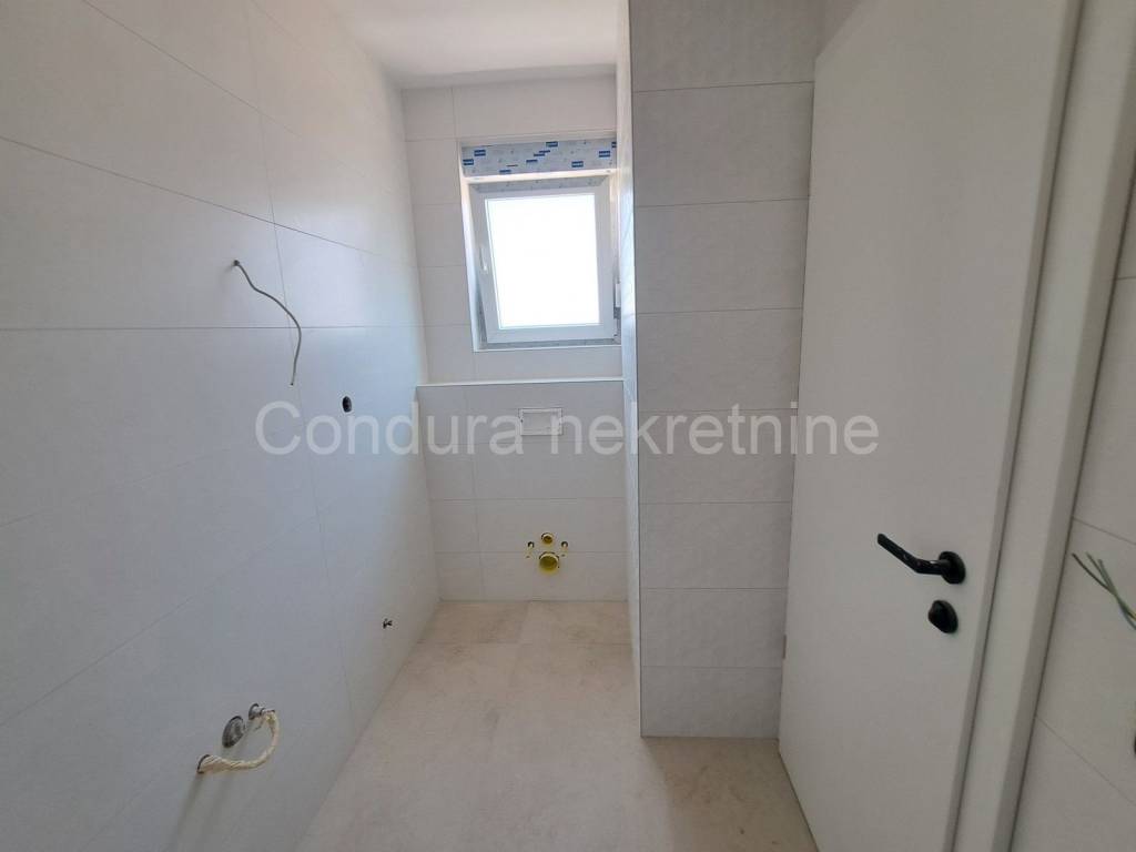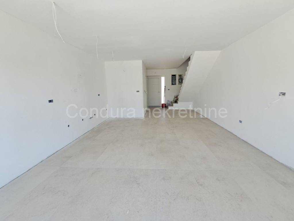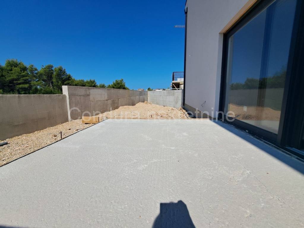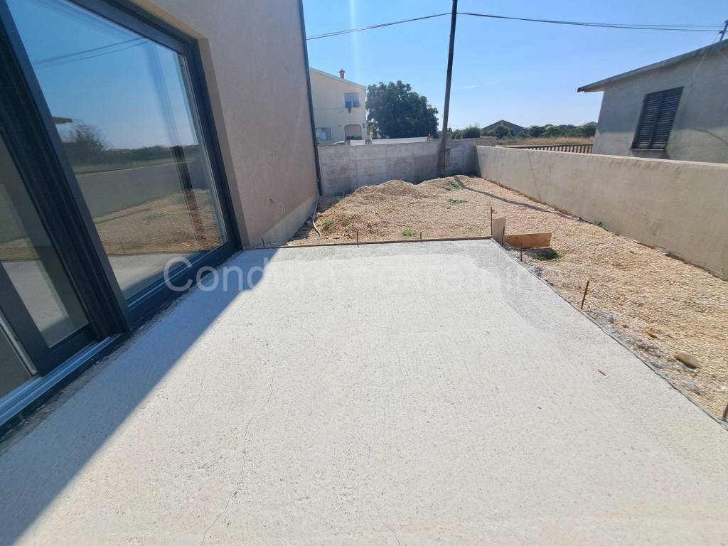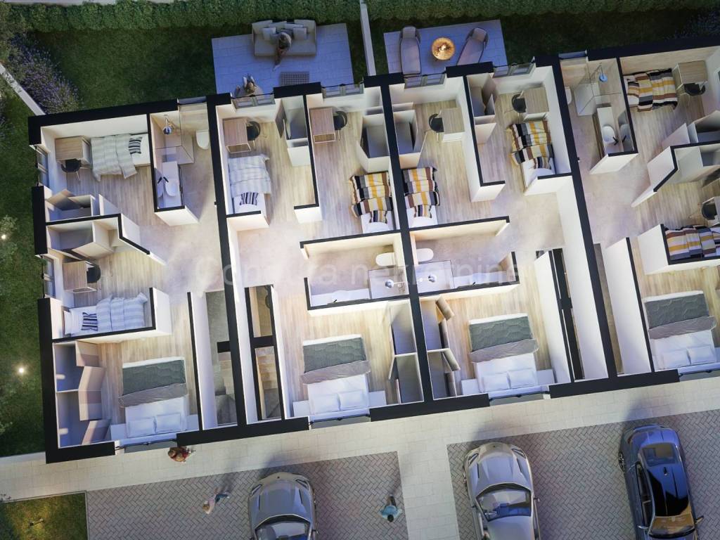 From the living room, glass sliding doors lead to a covered terrace, which continues onto a spacious private garden of approximately 66 m.