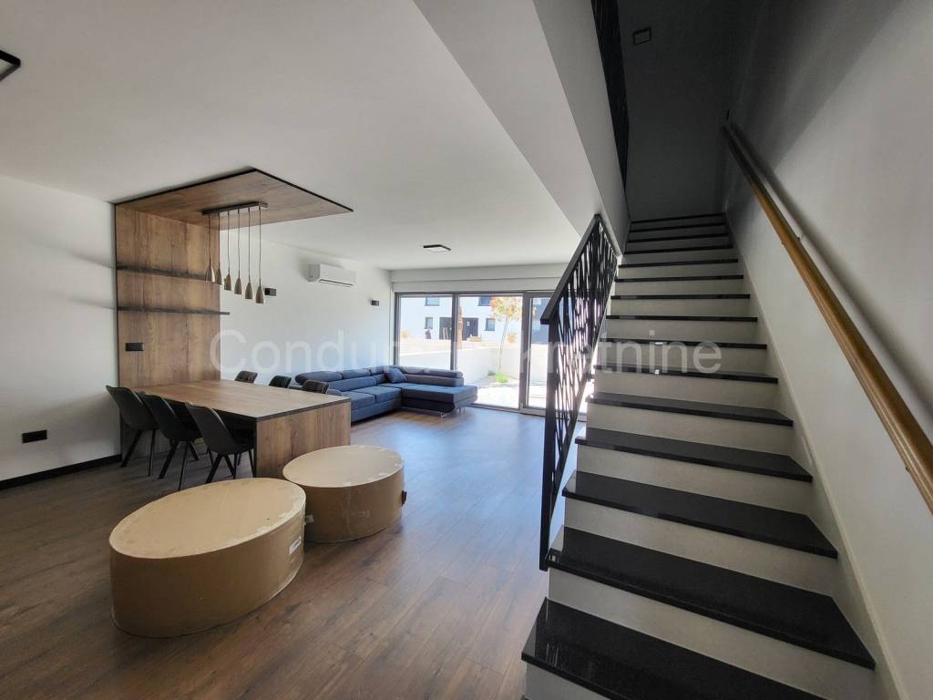 From the dining room and the living room there is access to the terrace on the ground floor, next to which there is a34 m2garden.