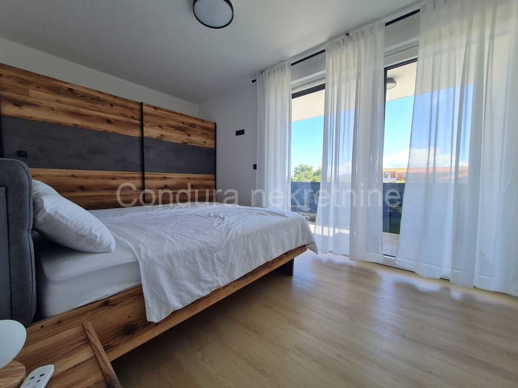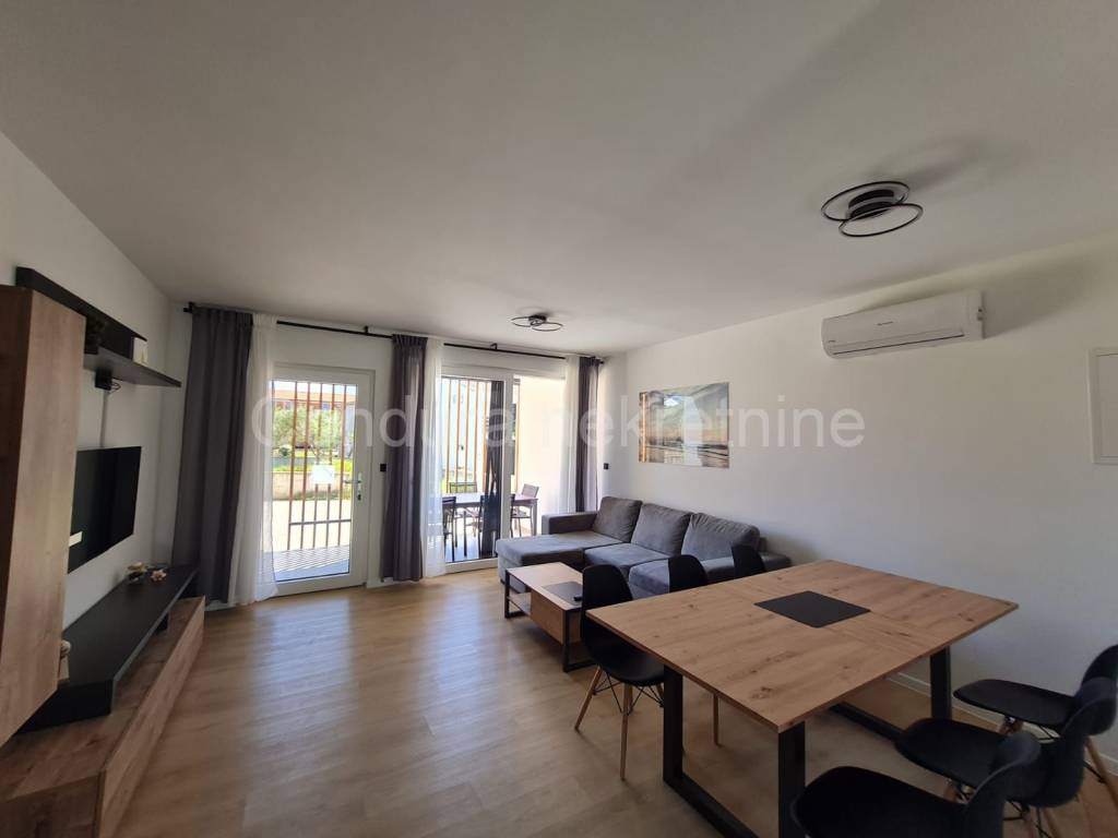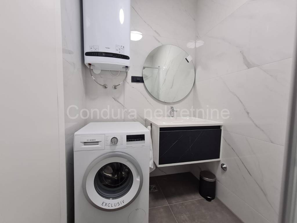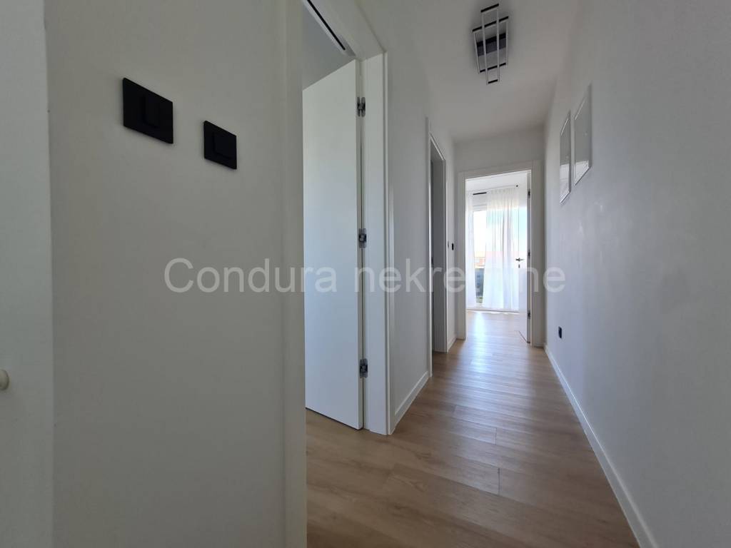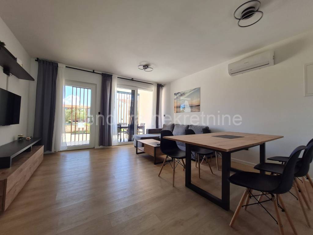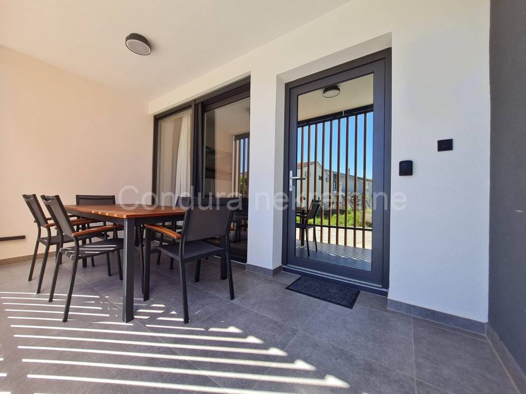 On the ground floor there is a loggia through which you enter the apartment, a living room with a dining room and kitchen, one bathroom and an exit to the back of the building where there is a small garden that also belongs to the apartment. The internal staircase leads to the upper floor, where there is a bedroom, one bathroom and another bedroom with access to a large loggia. It also has two parking spaces in front of the building.