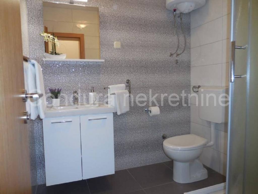 The house with a net area of 452,5 m2 was built on a plot of land measuring 2241 m2. It consists of a ground floor, one upper floor and an attic. On the ground floor there is one studio apartment, two one bedroom apartments and one two bedroom apartment. On the first floor is a spacious two bedroom apartment consisting of a kitchen with a dining room and a living room, one bedroom, a bathroom and a master bedroom with its own bathroom and wardrobe. On the first floor, there is also a two-story apartment that partly extends into the attic and consists of four bedrooms, two bathrooms, a kitchen with a dining room and a living room. All apartments have access to their own terrace and a separate entrance. They are fully furnished and air-conditioned.