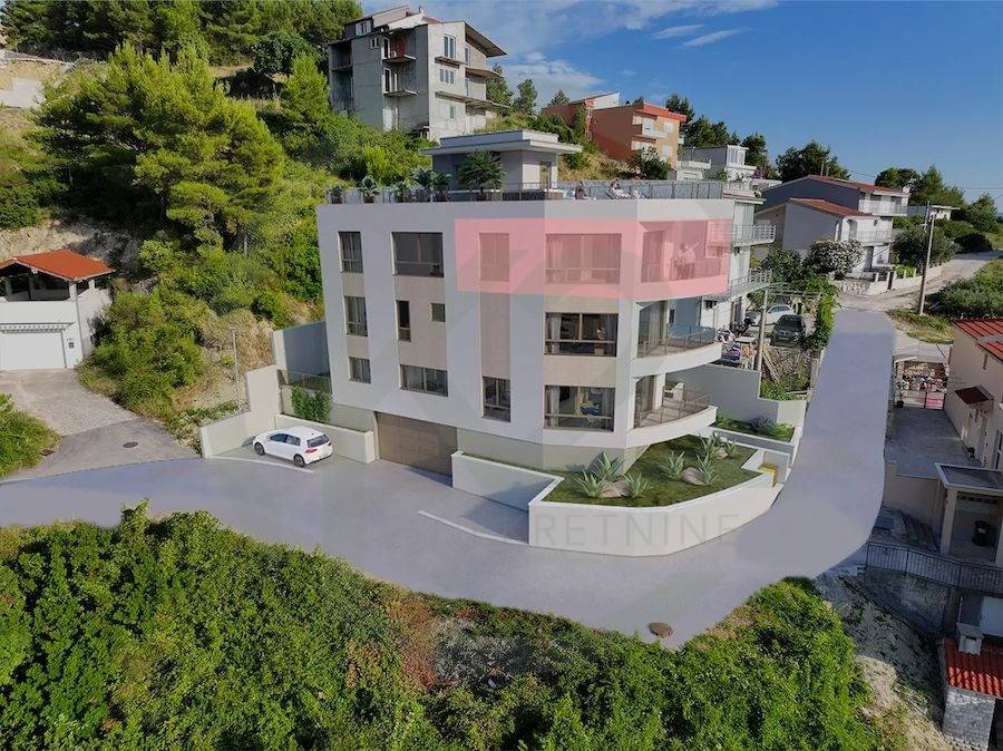 Lokacija je u mirnom predgrađu Splita, poznatom po lijepim plažama, luksuznim vilama i odličnim sadržajima. U blizini nalaze se restorani, trgovine, škola, marina.