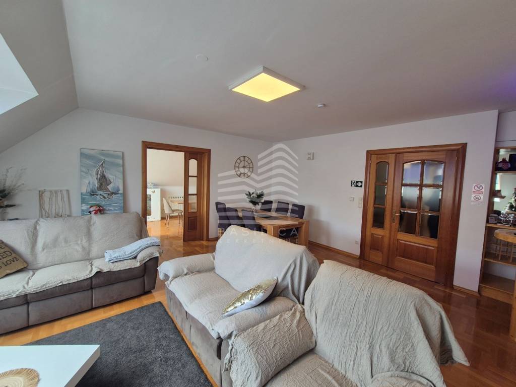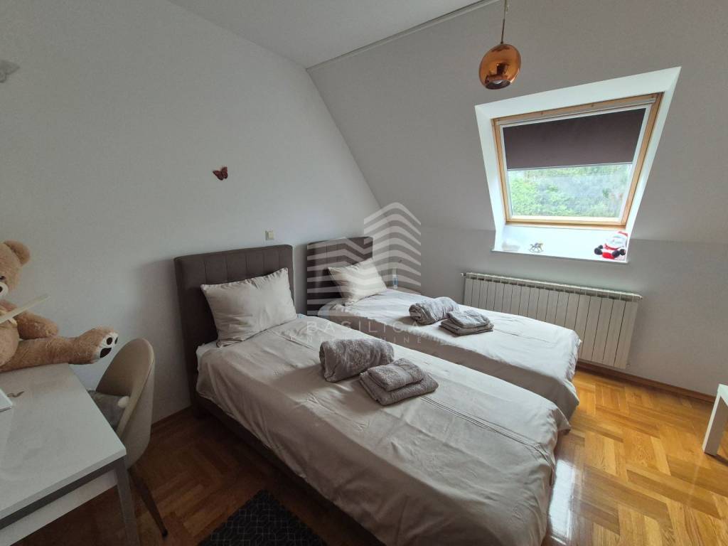 Stan se sastoji od hodnika, četiri sobe (tri spavaće i jedna radna), tri kupaonice, kuhinje s blagovaonicom, velikog dnevnog boravka i dvije loggie, ukupne netto korisne površine 156,51 m2. Stanu pripada spremište (7,57 m2) i garaža (15,66 m2) u prizemlju zgrade. Mogućnost parkiranja za još 1 vozilo ispred garaže, te besplatan parking u ulici.