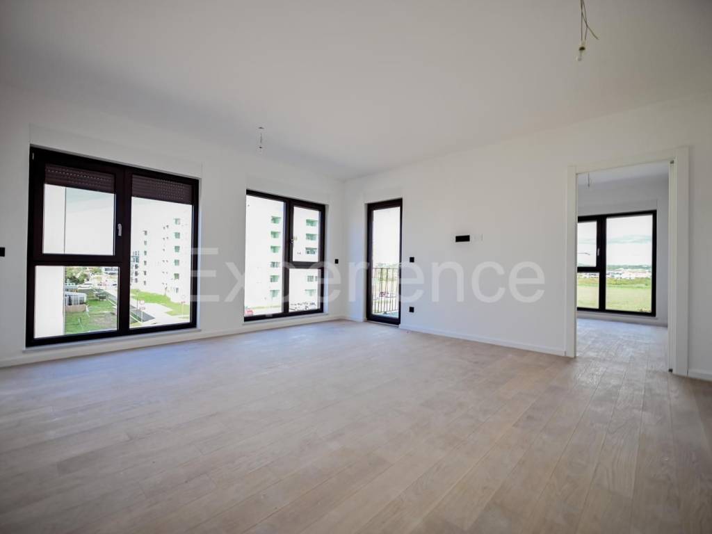 In vendita è un appartamento situato al terzo piano dell'edificio residenziale, con la superficie di 57,74 m. Comprende: corridoio, un spazio aperto e luminoso dove sono situati il soggiorno, sala da pranzo e cucina con accesso al balcone (6,36 m), due camere da letto e bagno. L'appartamento dispone inoltre di un deposito (3,14 m) e posto auto in garage.