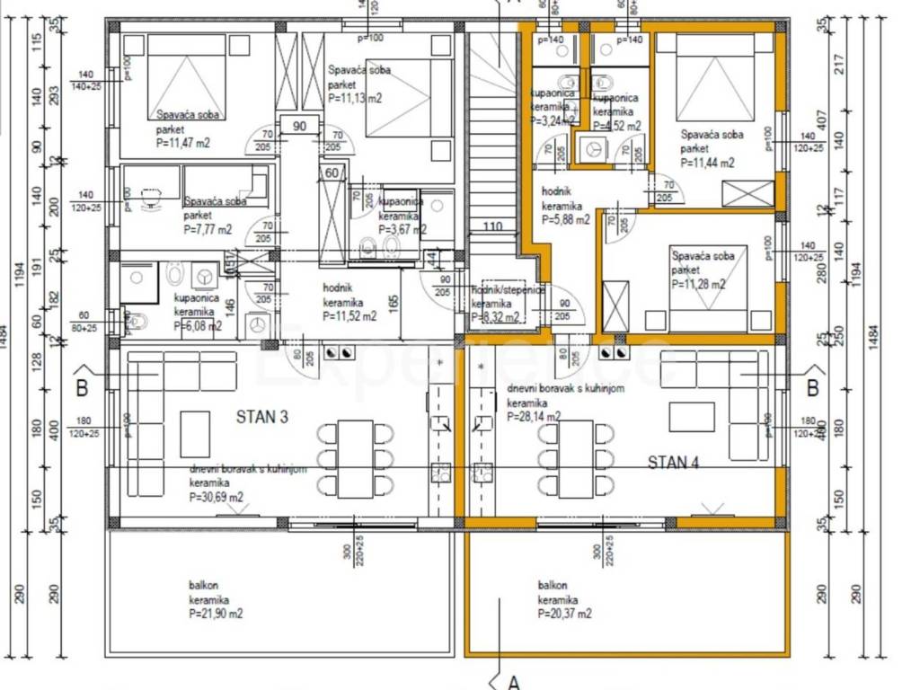 L'interno comprende: corridoio, spazioso e luminoso soggiorno open space con cucina e sala da pranzo, spaziosa terrazza coperta (20,37 m), due camere da letto, due bagni moderni.