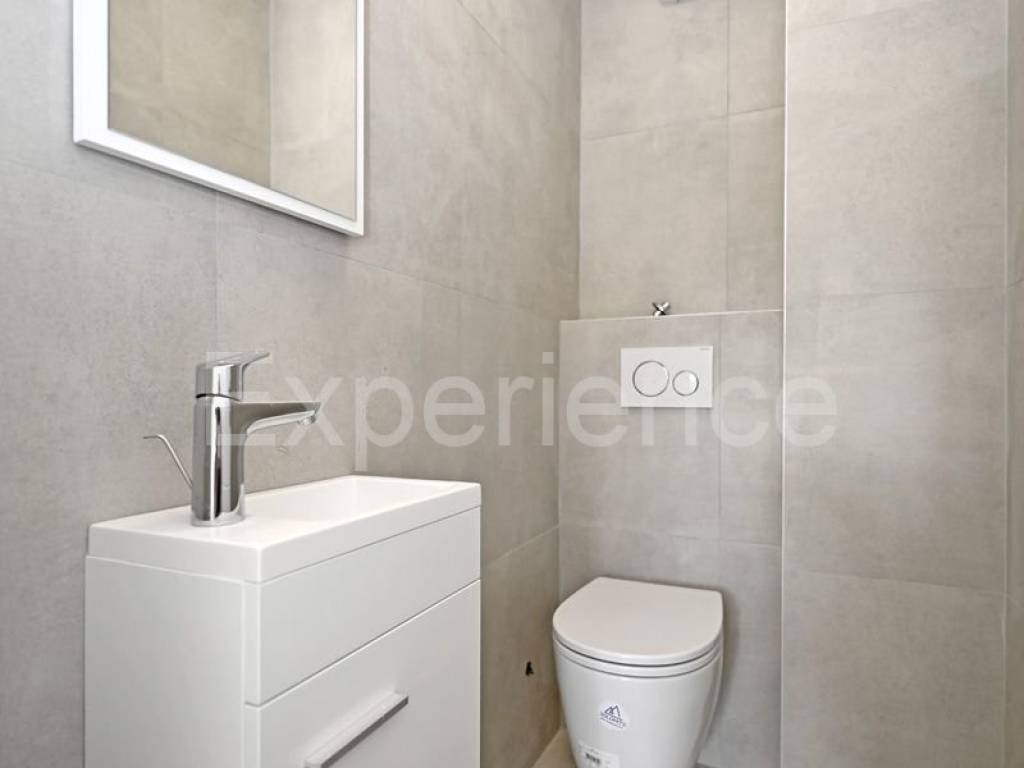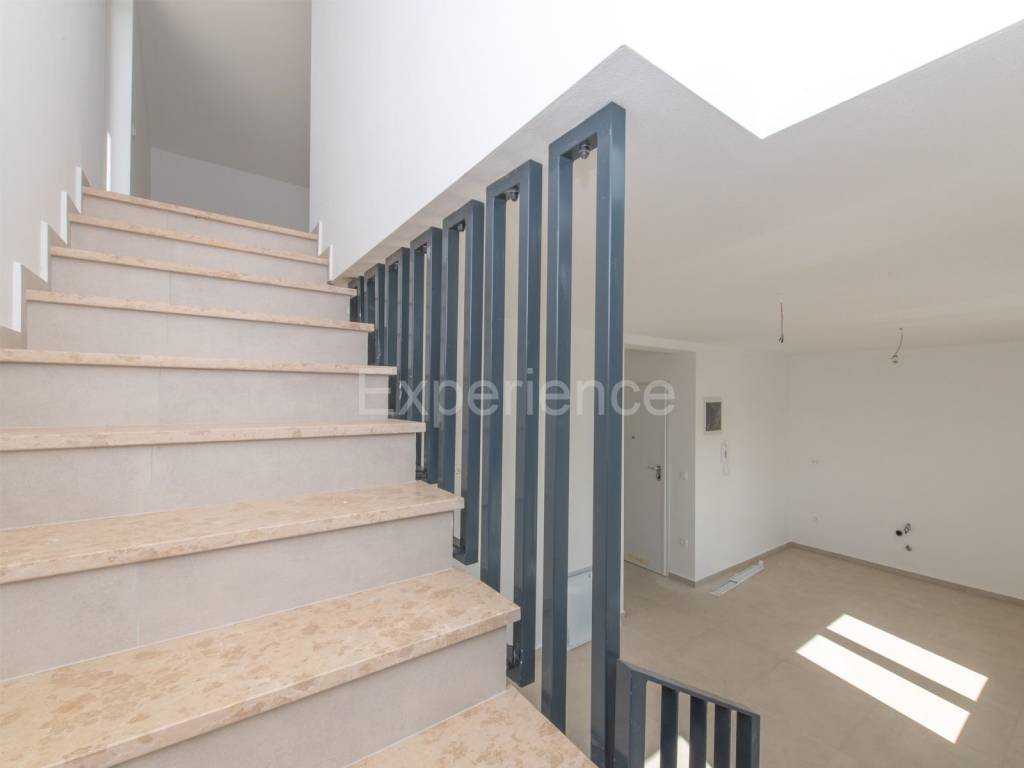 L'appartamento si sviluppa su due piani. Al piano inferiore si trova un luminoso spazio open-space con soggiorno, zona pranzo e cucina, camera da letto e toilette. Al piano superiore sono situate due camere da letto, bagno e soppalco con accesso alla spaziosa terrazza (30,94 m). Dalla terrazza si estende la vista sul mare.