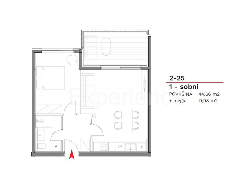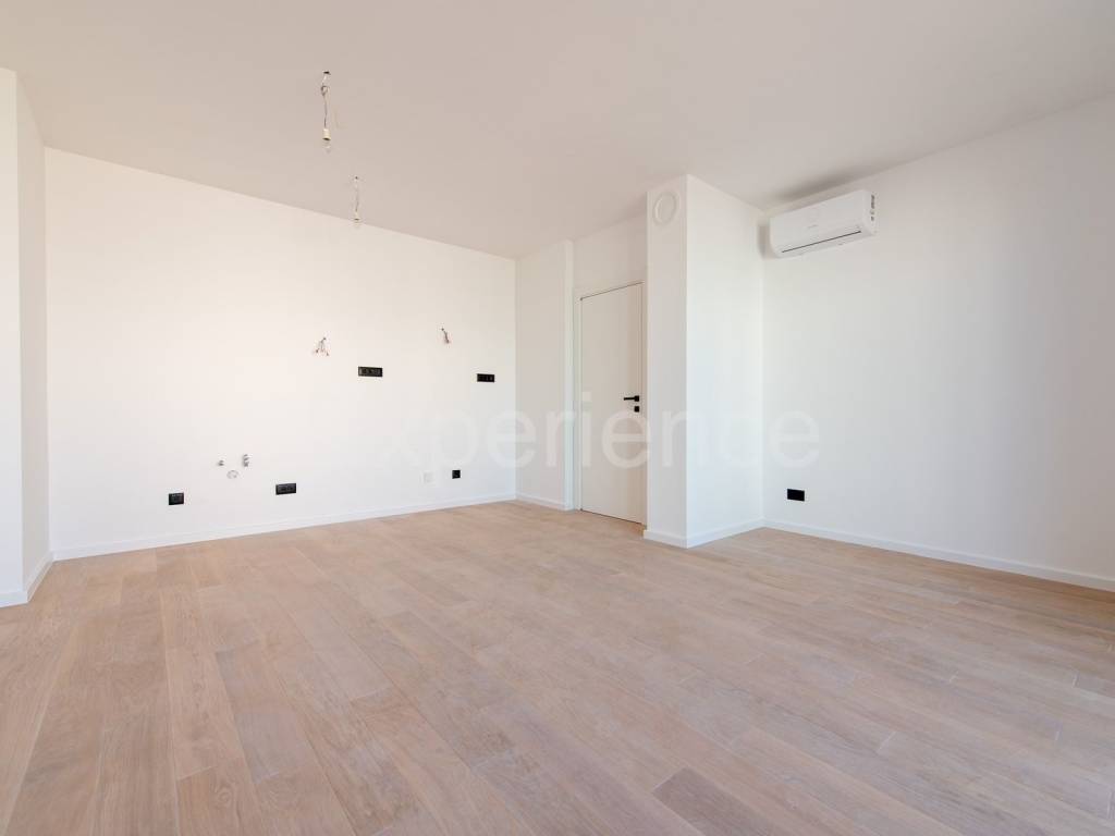 In vendita è un appartamento situato al secondo piano dell'edificio residenziale, con la superficie di 52,15 m. Comprende: corridoio, un spazio aperto e luminoso dove sono situati il soggiorno, sala da pranzo e cucina con accesso al spazioso balcone (9,98 m), camera da letto e bagno. L'appartamento dispone inoltre di un deposito (3,67 m) e posto auto esterno.