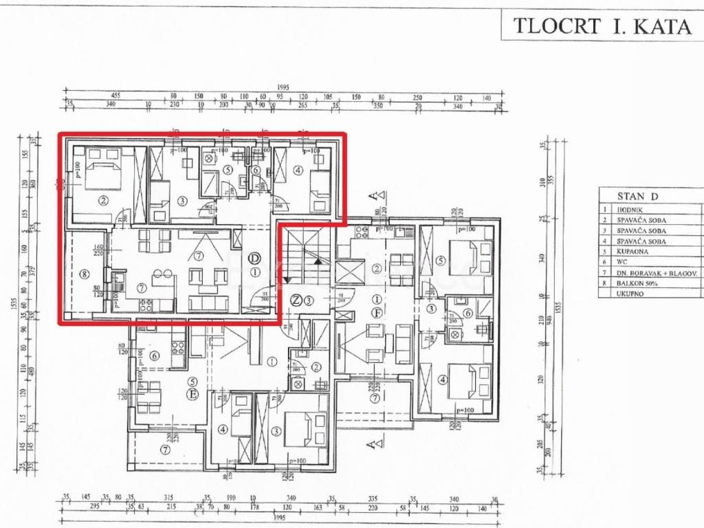 Situato al primo piano di un edificio residenziale, è composto da: corridoio, soggiorno aperto e luminoso collegato alla cucina e alla sala da pranzo, tre camere da letto, bagno moderno e toilette, terrazza coperta (7,06 m).