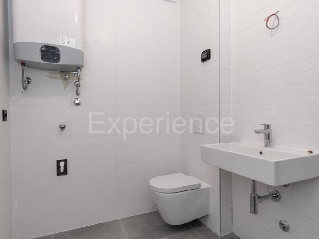 In vendita è un appartamento situato al primo piano dell'edificio residenziale, con la superficie di 52,95 m. Comprende: corridoio, un spazio aperto e luminoso dove sono situati il soggiorno, sala da pranzo e cucina con accesso ad uno spazioso balcone (11,07 m), camera da letto e bagno. L'appartamento dispone inoltre di un deposito (2,67 m) e posto auto esterno coperto.