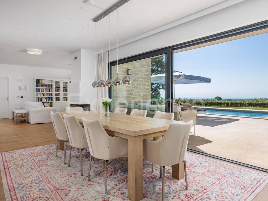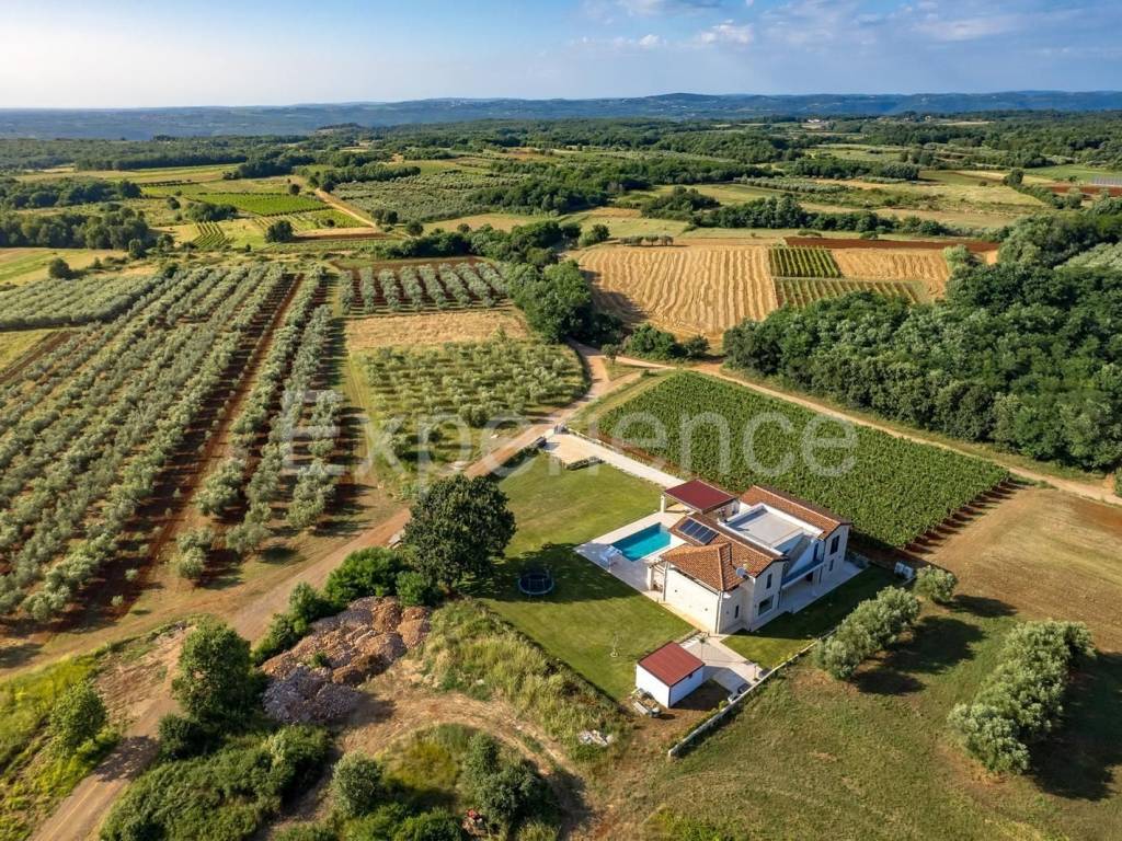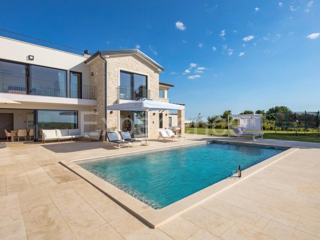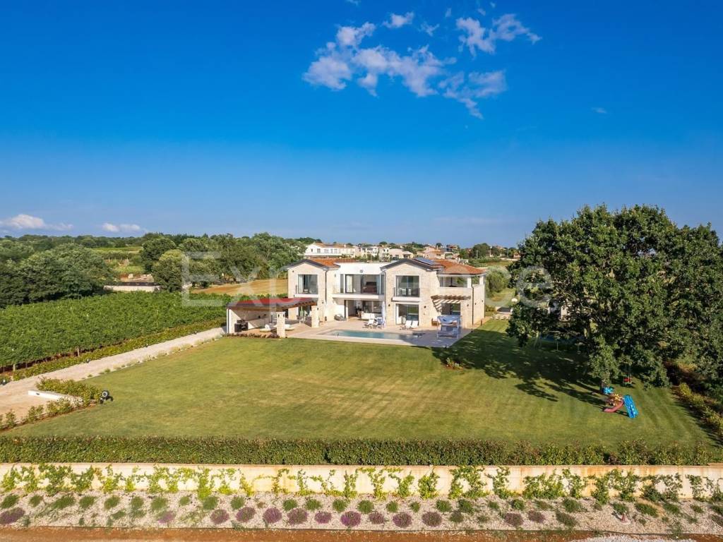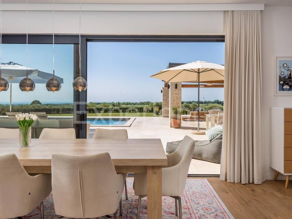 Immersa in una posizione rara e privilegiata sulla costa occidentale dell'Istria, appena fuori Parenzo, si trova questa lussuosa villa di nuova costruzione e completamente arredata - un armonioso connubio tra eleganza, privacy e l'autentica bellezza del paesaggio istriano. Situata proprio ai margini della zona edificabile, dove la vista si apre su vigneti, uliveti e sul mare infinito.