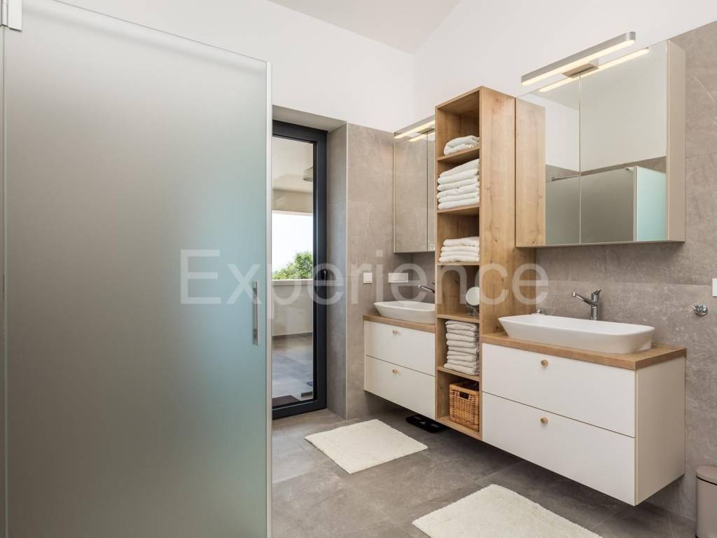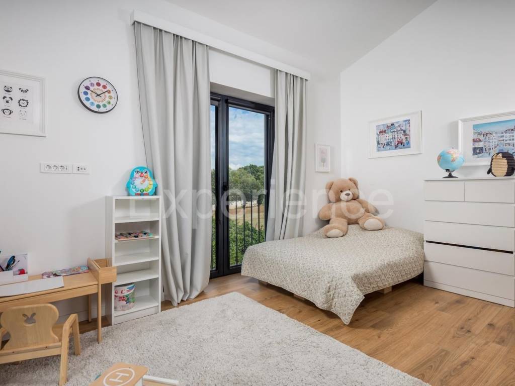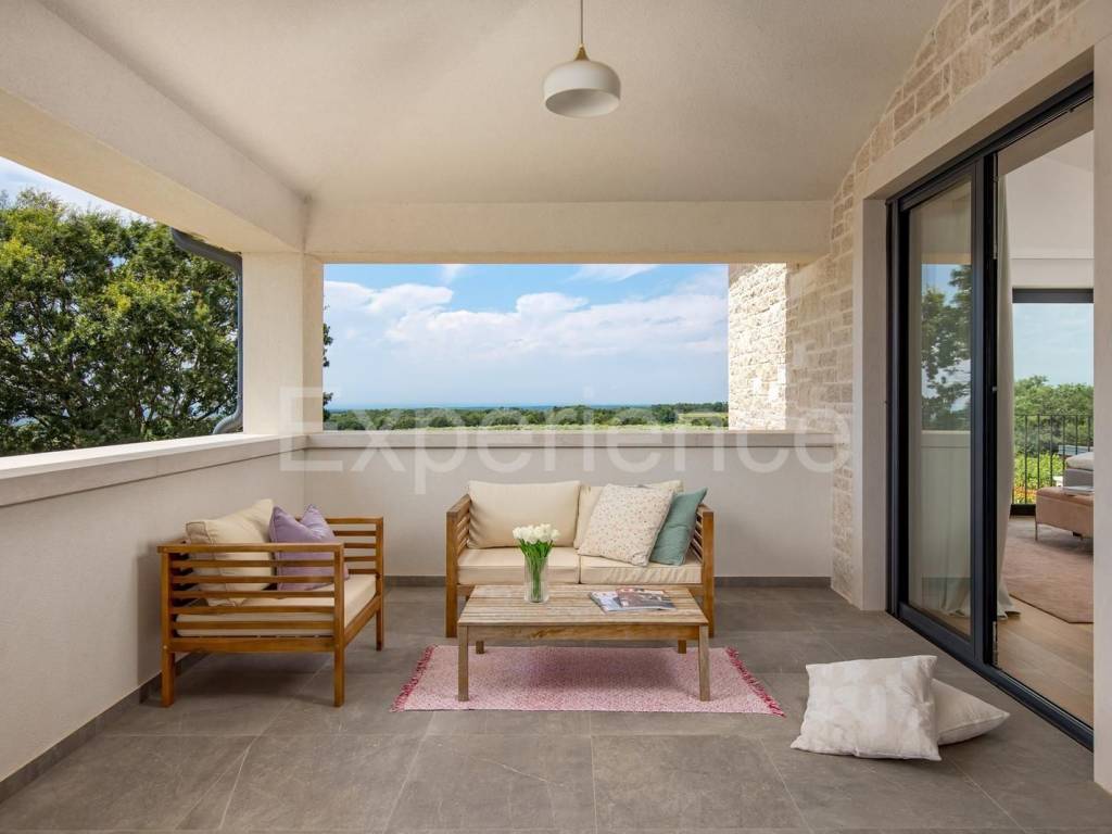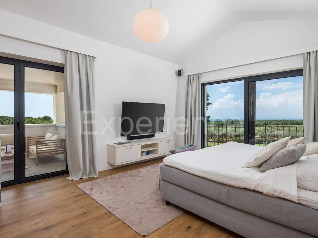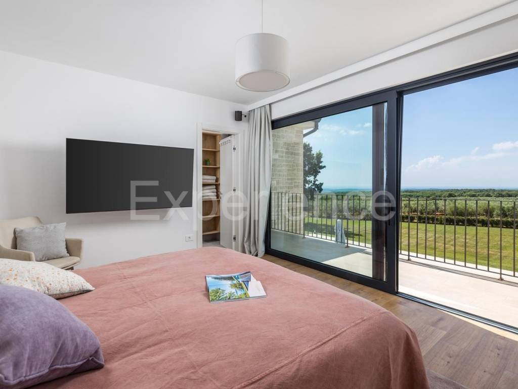Immersa in una posizione rara e privilegiata sulla costa occidentale dell'Istria, appena fuori Parenzo, si trova questa lussuosa villa di nuova costruzione e completamente arredata - un armonioso connubio tra eleganza, privacy e l'autentica bellezza del paesaggio istriano. Situata proprio ai margini della zona edificabile, dove la vista si apre su vigneti, uliveti e sul mare infinito.