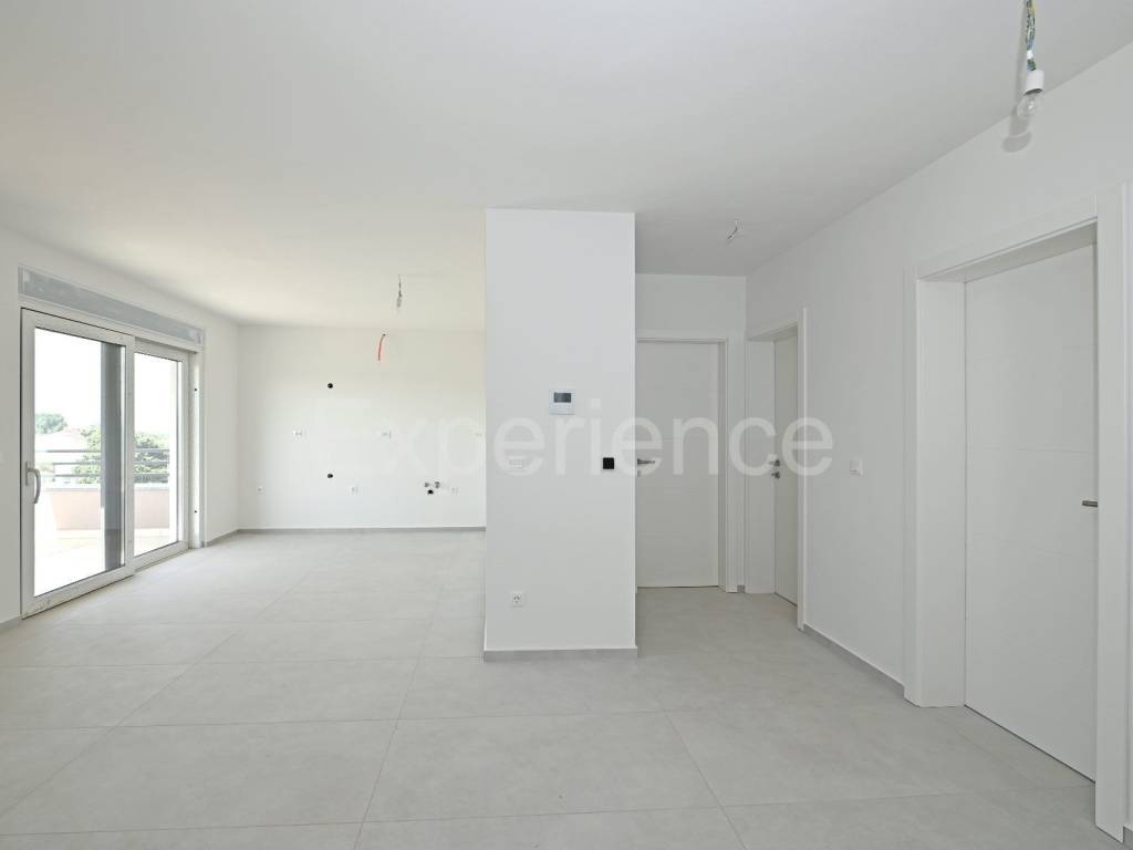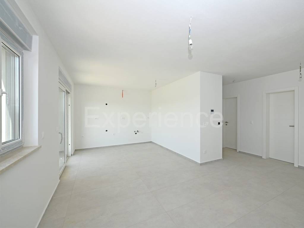 A Tar - a circa 2 km dal mare, in una zona molto tranquilla è in vendita un appartamento di nuova costruzione, con la superficie di 58,57 m. L'appartamento è situato al secondo piano di un edificio residenziale. Comprende: corridoio, un spazio aperto e luminoso dove sono situati il soggiorno, cucina e sala da pranzo, due camere da letto, bagno e terrazza coperta (9,50 m). Dalla terrazza si estende la VISTA APERTA SUL MARE.