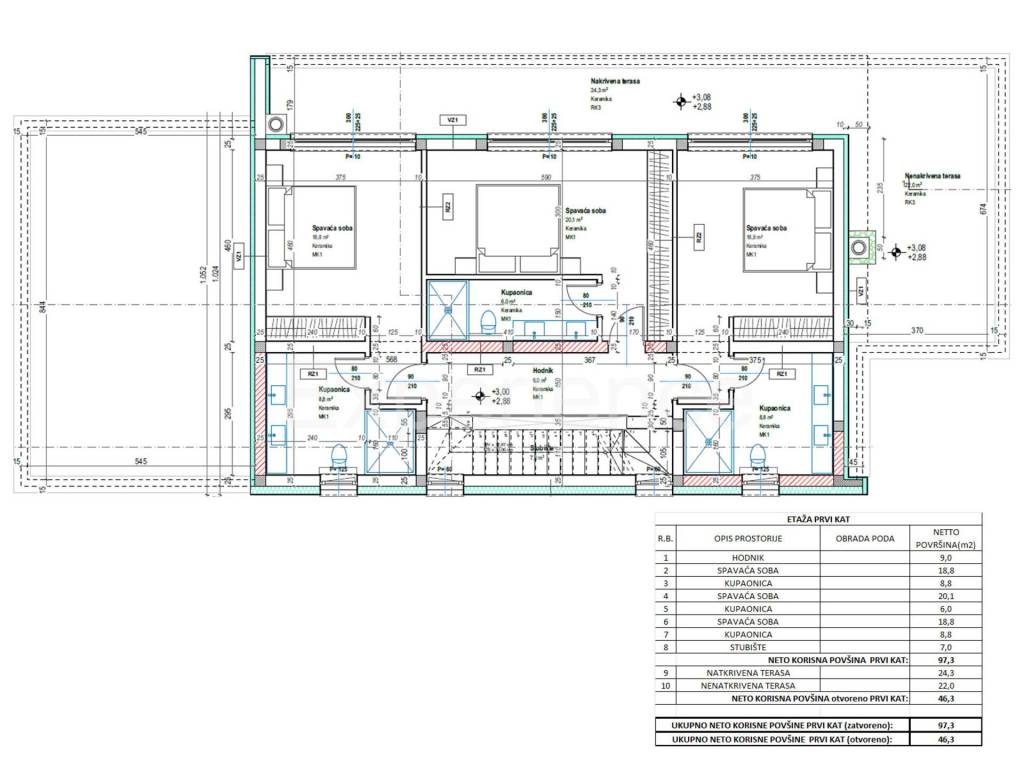 Al primo piano sono situate tre spaziose camere da letto con ampie aperture in vetro, ciascuna con bagno e accesso a una terrazza coperta con vista sul mare.