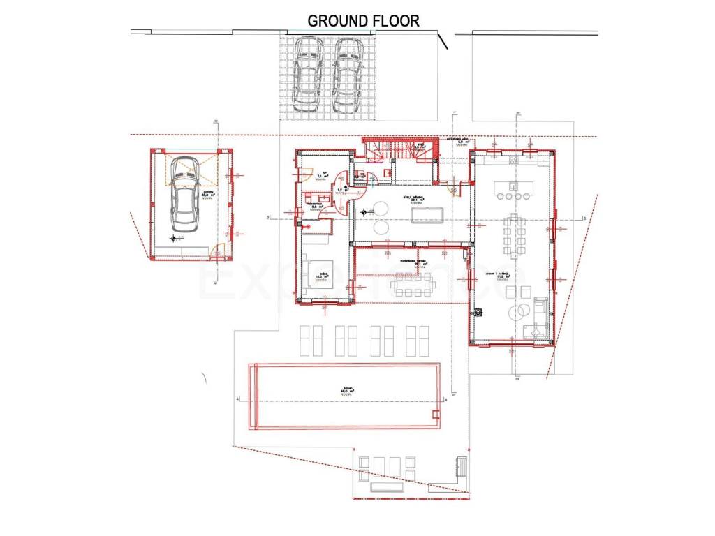 Al piano terra si trova un spazioso soggiorno (33,40 m) con accesso alla piscina, un spazio aperto dal design lussuoso che unisce una cucina moderna, un'elegante sala da pranzo e un ulteriore soggiorno con accesso diretto alla terrazza coperta (28,10 m). Questo piano comprende anche una camera da letto con bagno privato, locale tecnico, lavanderia e bagno per gli ospiti.