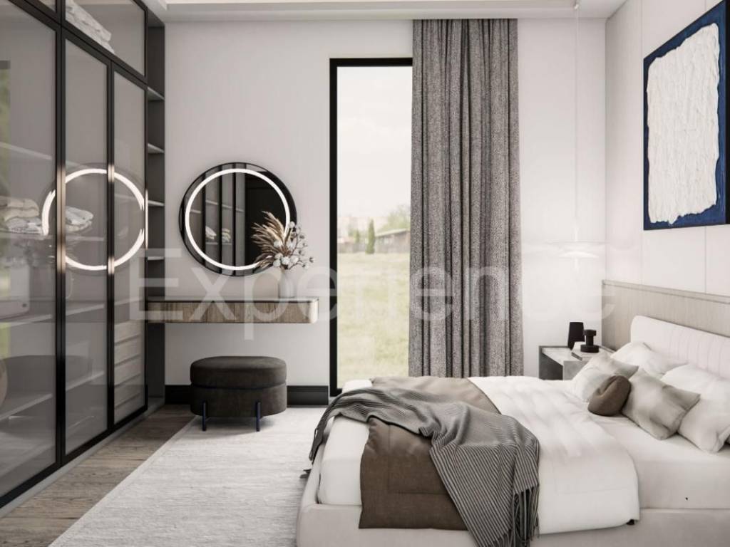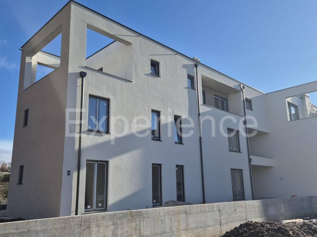 L'appartamento è situato al primo piano di un intimo edificio residenziale con solo cinque unità abitative, copre una superficie netta di 94.47 m (lordi 98.97 m). Comprende: corridoio, spazioso soggiorno collegato alla cucina e alla sala da pranzo con accesso alla spaziosa terrazza coperta (9,82 m), tre camere da letto, bagno e toilette.