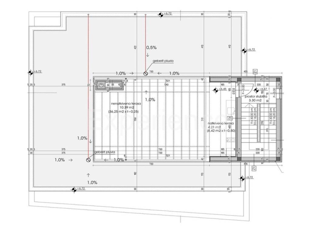 La villa ha un giardino di 672 m. Nel giardino paesaggistico verrà costruita la piscina (32 m).