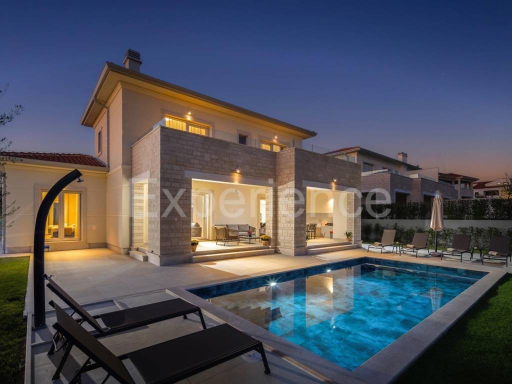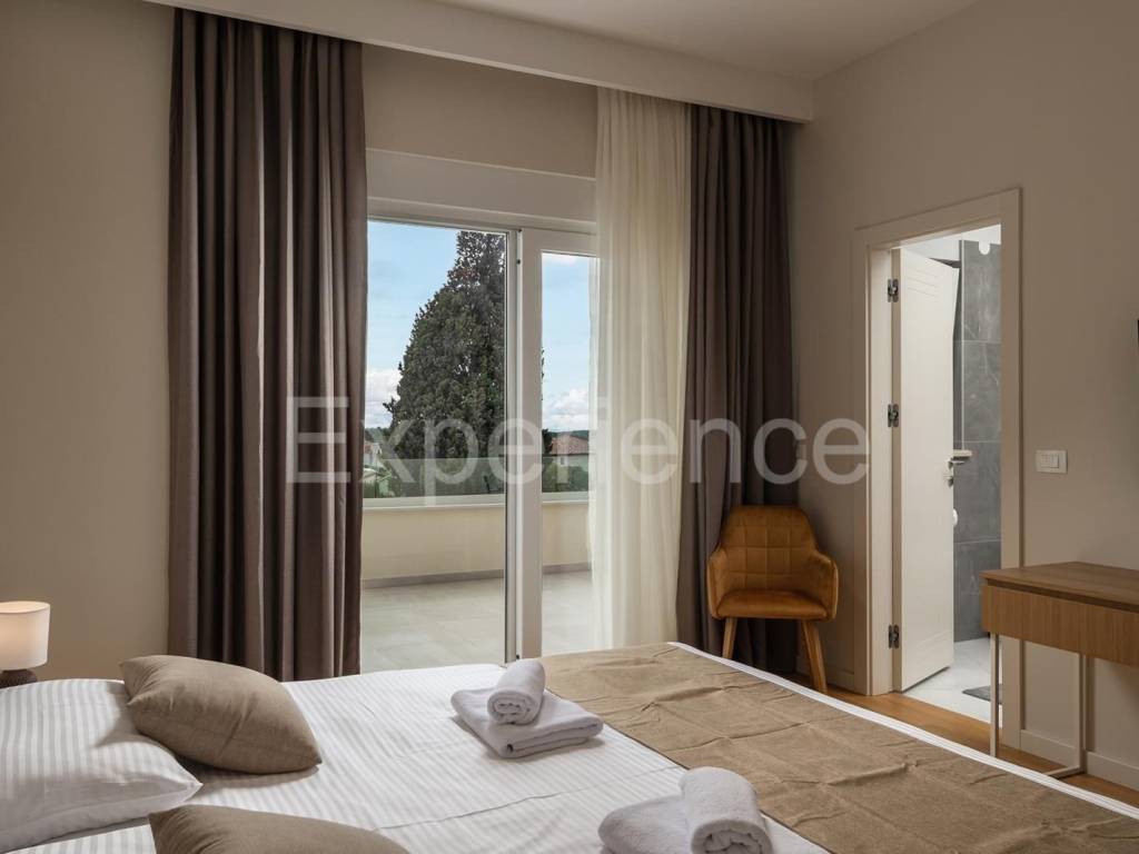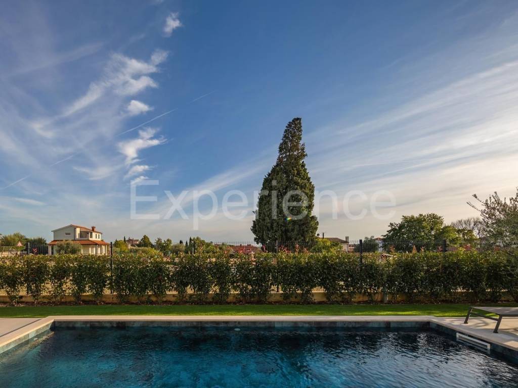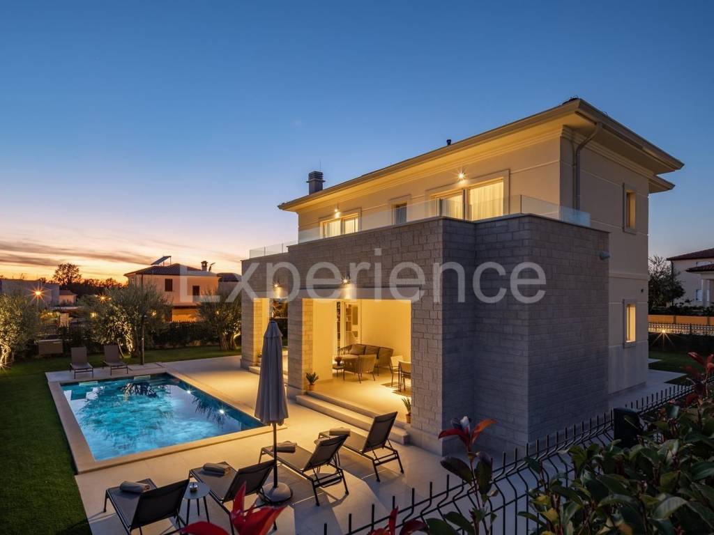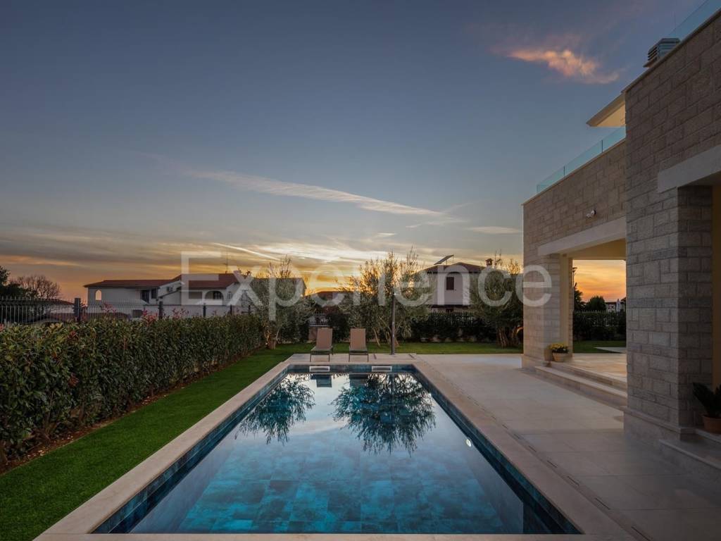 Nelle vicinanze di Parenzo - ca. 1.500 m dal mare, in un ambiente molto tranquillo è in vendita una villa con piscina riscaldata, della superficie netta complessiva di 208 m. La villa è stata costruita nel 2022., si sviluppa su due piani. Al piano terra si trova: corridoio, un luminoso spazio aperto che unisce soggiorno, cucina e sala da pranzo e si accede ad un spazioso terrazzo coperto di 31 m. Al piano terra troviamo inoltre una camera da letto con proprio bagno e guardaroba, locale tecnico ed toilette. Al primo piano della villa sono situate due confortevoli camere da letto, ciascuna con il proprio bagno e accesso ad un spazioso terrazzo (31 m) con vista sul mare.