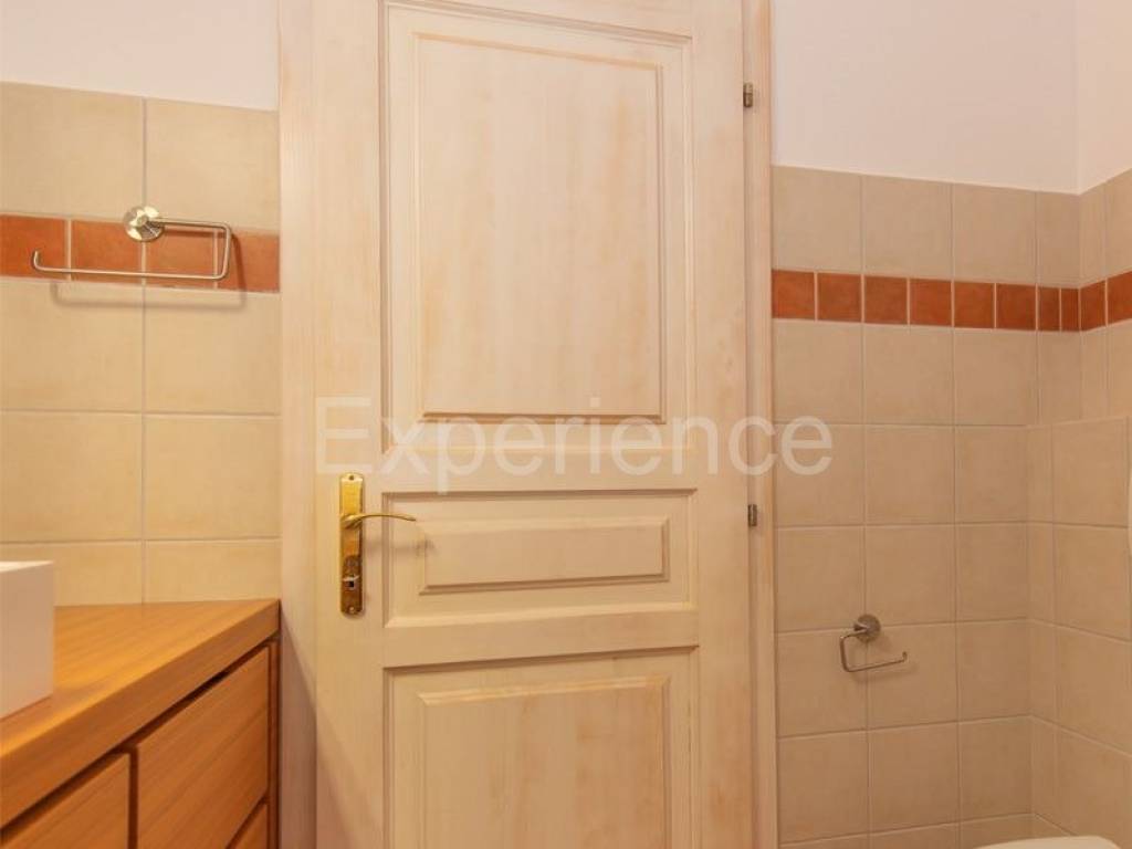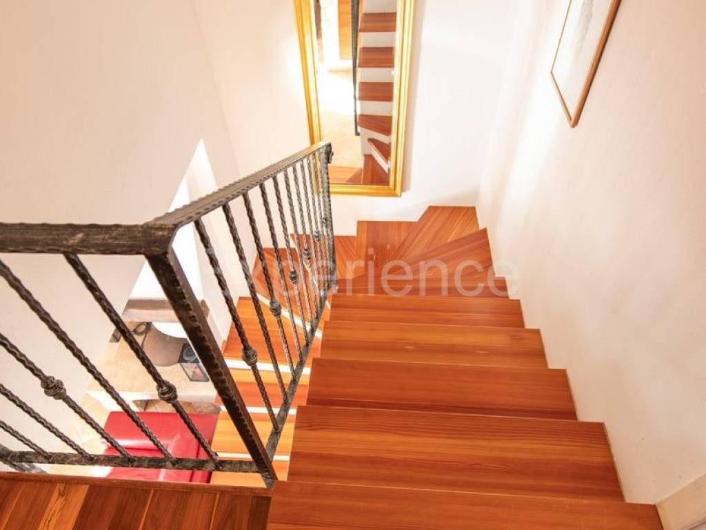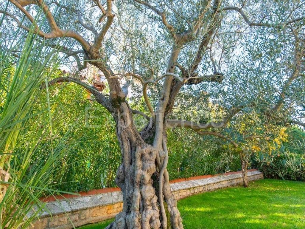 Il terrazzo è collegato al giardino tramite scala esterna. Il giardino è splendidamente paesaggistico con piante mediterranee, un vecchio ulivo, prato paesaggistico e una piscina di 30 m.