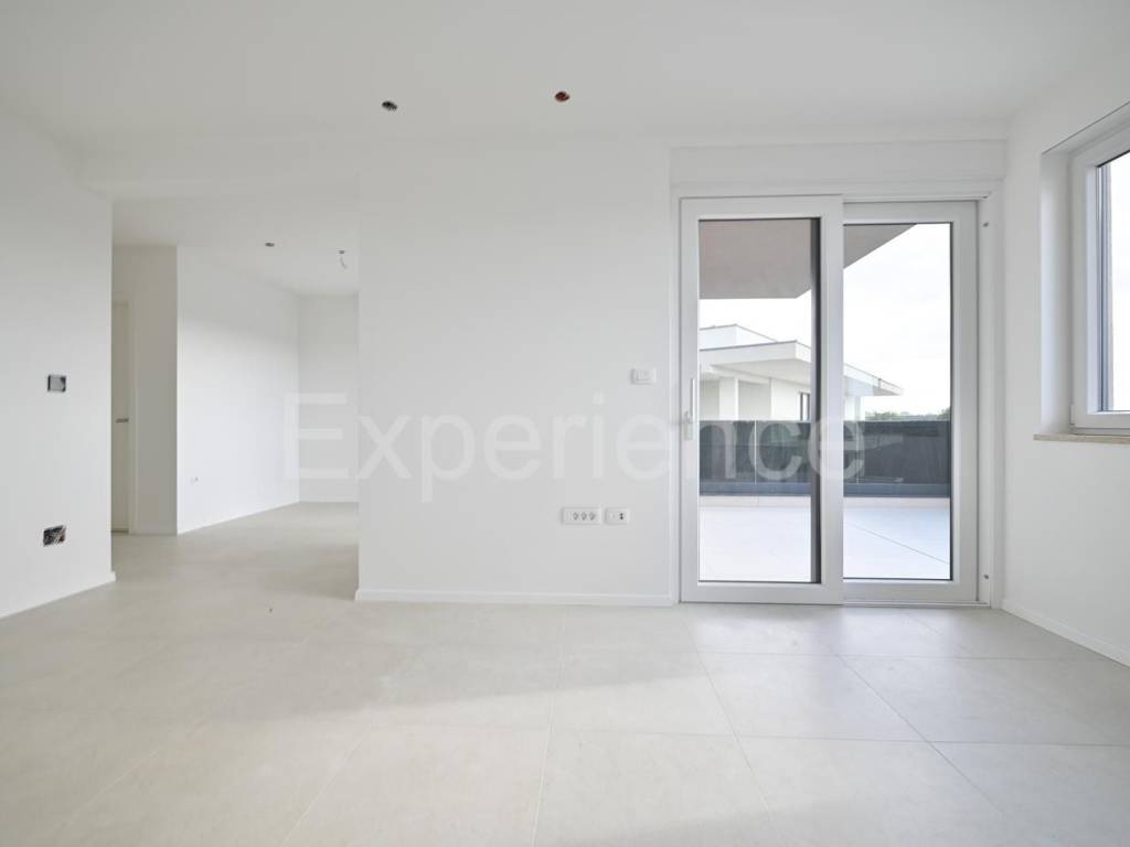 A Vabriga - a circa 900 m dal mare, in una posizione molto tranquilla �� in vendita un appartamento in un nuovo edificio con la superficie di 73,19 m. L'appartamento �� situato al terzo piano, che �� anche l'ultimo piano dell'edificio residenziale. Comprende: corridoio, spazio aperto e luminoso che unisce soggiorno, cucina e zona pranzo con accesso alla spaziosa terrazza coperta (16,57 m), due camere da letto, bagno e ripostiglio.