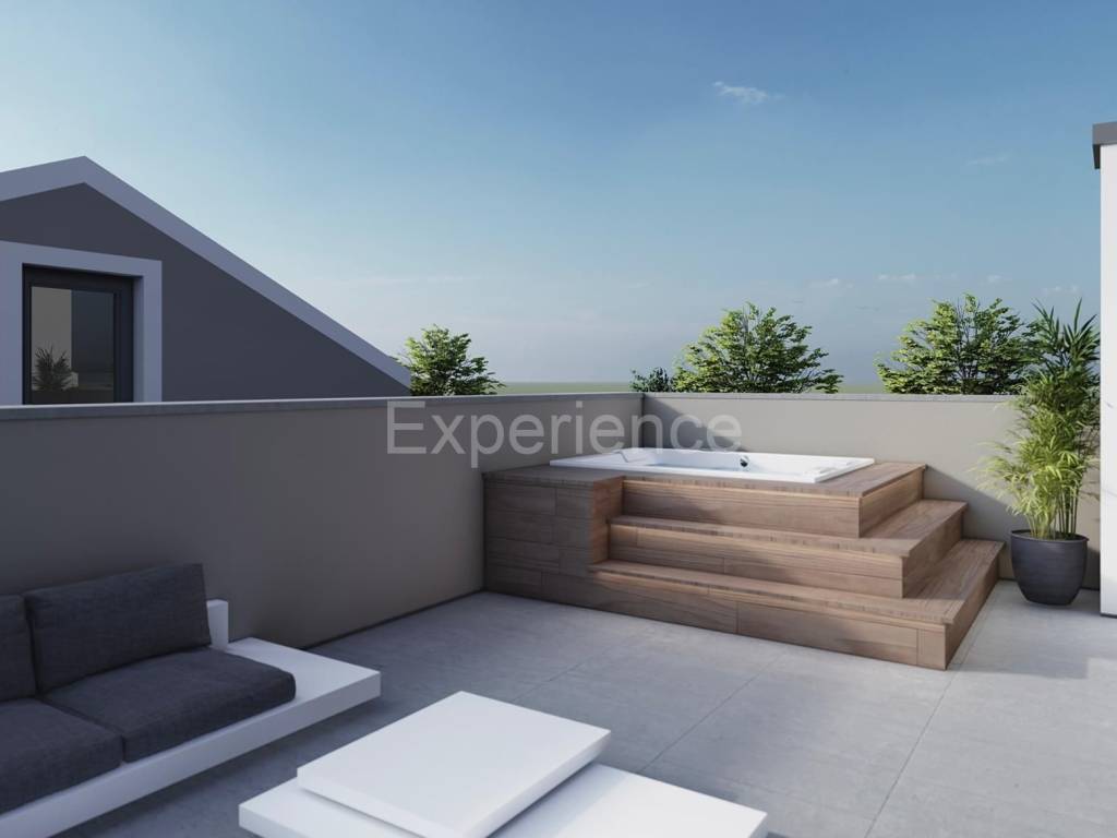 Nelle vicinanze di Parenzo, ca. 11 km dal mare è in vendita una casa in costruzione, con una superficie totale di 161 m. La casa è la seconda a schiera su un totale di 4 case. È composta da tre piani: piano terra, primo piano e mansarda. Al piano terra sono situati: corridoio, spazio aperto e luminoso in cui si trovano il soggiorno, cucina e sala da pranzo con accesso al terrazzo, toilette e due depositi. Al primo piano sono situate tre camere da letto, di cui la stanza principale ha il proprio bagno e accesso sulla terrazza coperta, e due camere hanno il bagno in comune. Mentre nella mansarda è situata la quarta camera da letto con bagno, guardaroba e accesso ad un spazioso terrazzo (21,04 m).