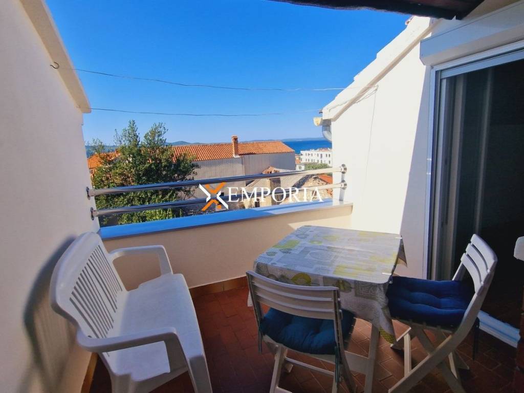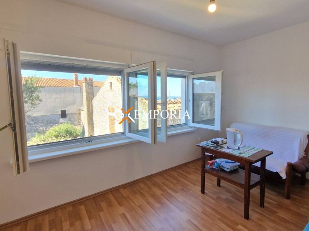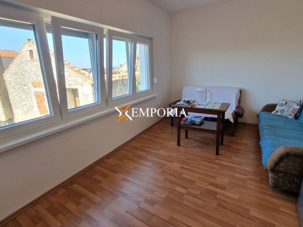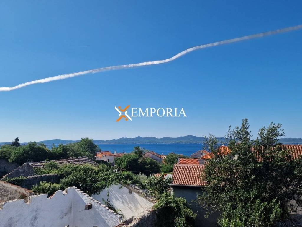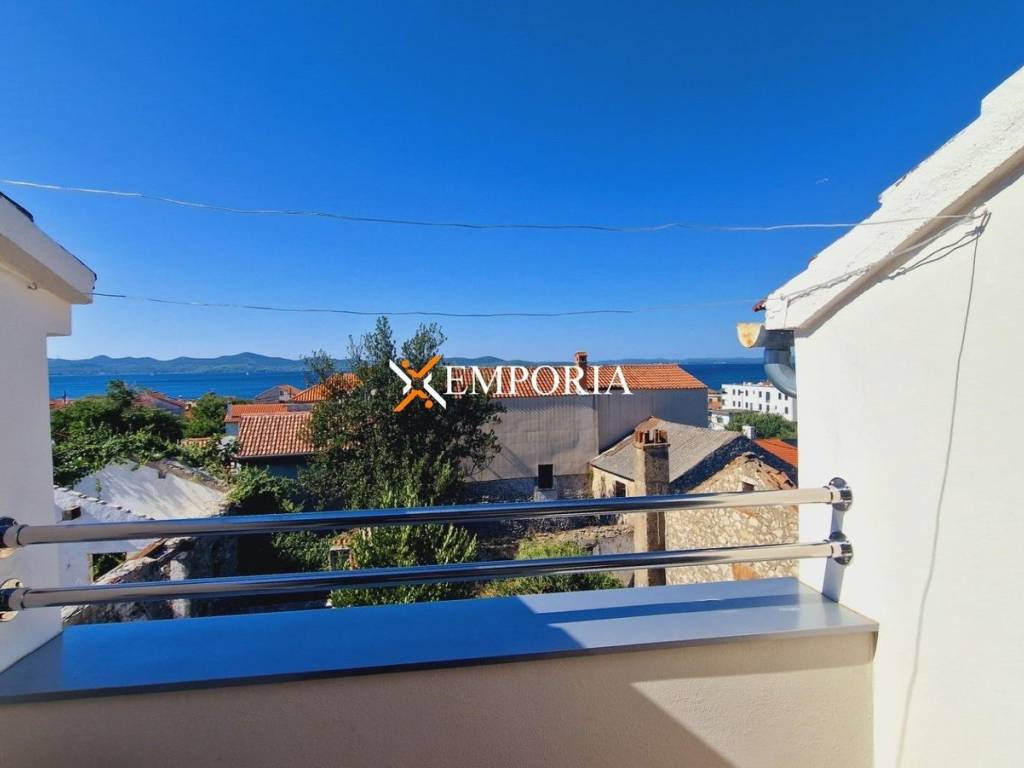 A terraced house with sea view is for sale in the old part of Diklo in Zadar. It is only 170 m from the sea. The house consists of a ground floor and two more floors. From the second floor you have a view of the sea.On the ground floor there is a garage, a storage room and a toilet. The floors of the house are connected by an internal staircase. On the first floor there is a hallway, a kitchen with dining room and living room, a bedroom and a bathroom. In addition, on the 2nd floor there is another hallway, a second bedroom and a terrace.The total area of the house is 92.54 m2.