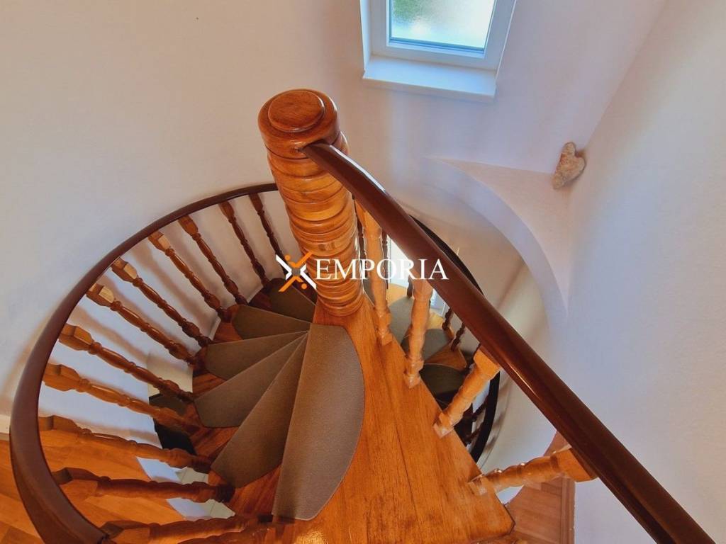 The house was built of bricks and reinforced concrete. The facade has 8 cm thick Styrofoam thermal insulation. The facade and gutters were renovated in 2022. The floor coverings are laminate and tiles. The windows are made of PVC material with roller shutters and mosquito nets. The roller shutters are made of plasticized aluminum. The house has a fireplace. There is an outdoor grill on the second-floor terrace.