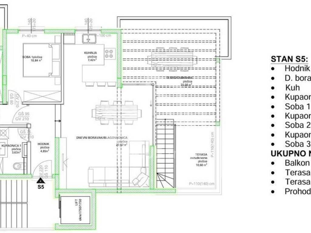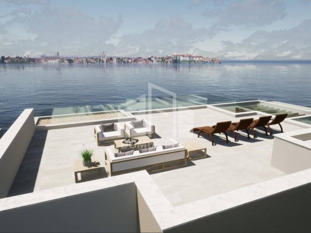 We are offering for sale a three-bedroom penthouse apartment on the second floor of a residential building under construction in Okrug Gornji. The apartment consists of a hallway, living room with kitchen and dining room, three bedrooms, three bathrooms, and a balcony, covered and uncovered terraces. The interior area of the apartment is 85.25 m2, balcony 11.25 m2, covered terrace 25 m2, uncovered terrace 10.60 m2, and roof terrace 104.55 m2. It comes with two garage and two outdoor parking spaces. The property is being built in a quiet location in the second row from the sea, and as such represents exceptional potential for tourist or year-round rental. For more information, contact the agent.