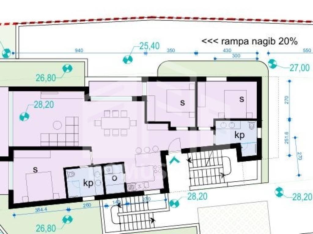 We are offering for sale a three-bedroom apartment on the first floor of a residential building under construction in Okrug Gornji. The apartment consists of a hallway, three bedrooms, two bathrooms with toilets, an additional toilet, a living room with a kitchen and a dining room, and a spacious terrace. The interior area of the apartment is 106 m2, and the terrace area is 25 m2. This is a residential building with three residential units. For more information, contact the agent.