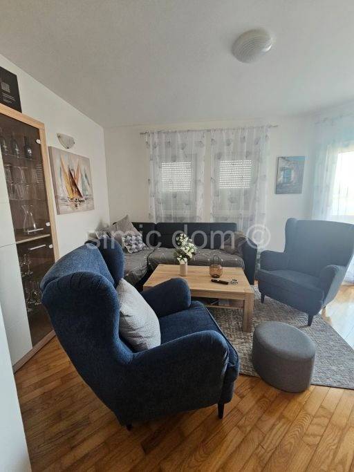 An apartment located in a prime location in Okrug Gornji, just 50m from the beach. This charming apartment on the second floor offers the perfect combination of comfort and convenience. The total interior area of 54.20 m and includes an open-style kitchen with dining area and living room, two bedrooms and a bathroom. The living area opens onto a spacious loggia of 8.15 m2, with a great view of the sea and ideal for relaxing on summer evenings and a view of Okrug. The apartment is fully equipped and furnished and has an attached outdoor parking space. With all the amenities, the apartment has a net usable area of 63 m2. Given the excellent location, this property is an ideal investment for rental, but also as your own vacation property.