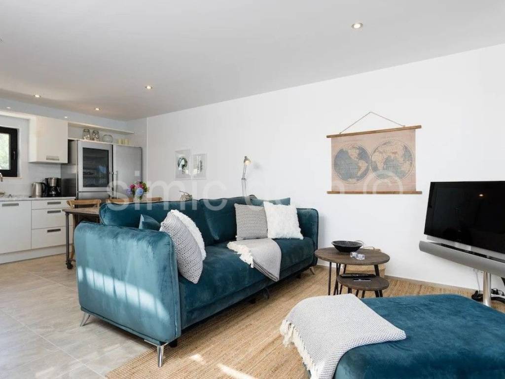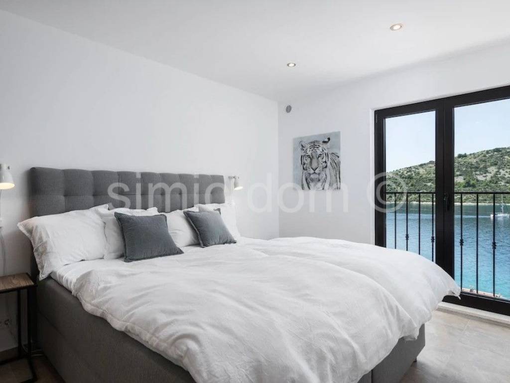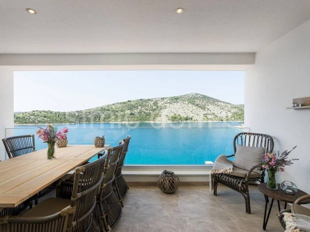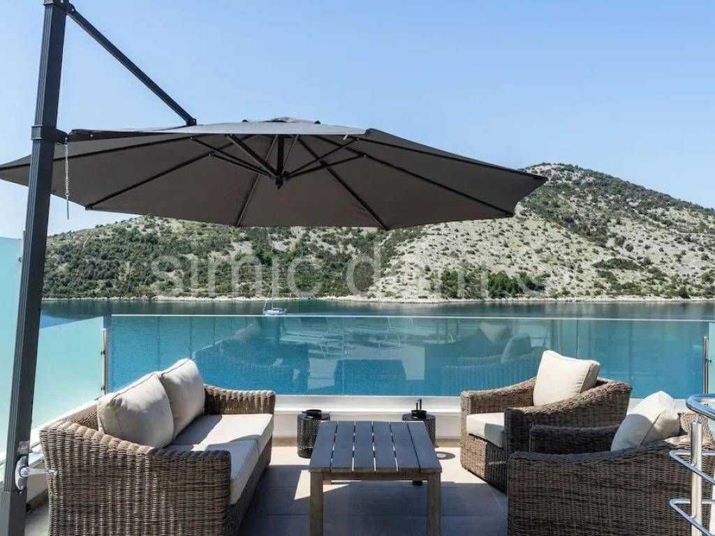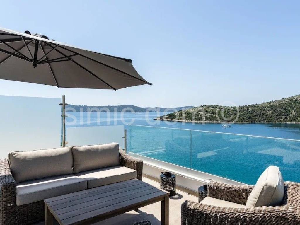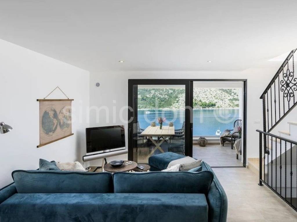 We are mediating the sale of a truly special, beautifully designed apartment with a total area of 121m2, which extends over the first and second floors of a smaller building with a total of three apartments. The building itself is located less than 30m from the turquoise sea and lovely beaches, while the location is truly very quiet (second row). On the first floor of the apartment there is a hallway, two bedrooms and a bathroom. The area of this level is 33m2. The second floor offers a kitchen, a spacious living area with a dining room, an additional toilet, a staircase and a beautifully decorated loggia from which there is a stunning view of the sea and the entire surrounding area. The area of this floor is 43m2. However, the biggest advantage is the impressive roof terrace of almost 45m2 with incredible sea views. We emphasize that the price also includes a parking space of 11m2. The apartment is fantastically, very modernly and luxuriously decorated and equipped with high-quality household appliances. This is a property that can be an excellent investment for tourism due to its proximity to Trogir, but also a peaceful oasis for your complete vacation. Ownership is in order.