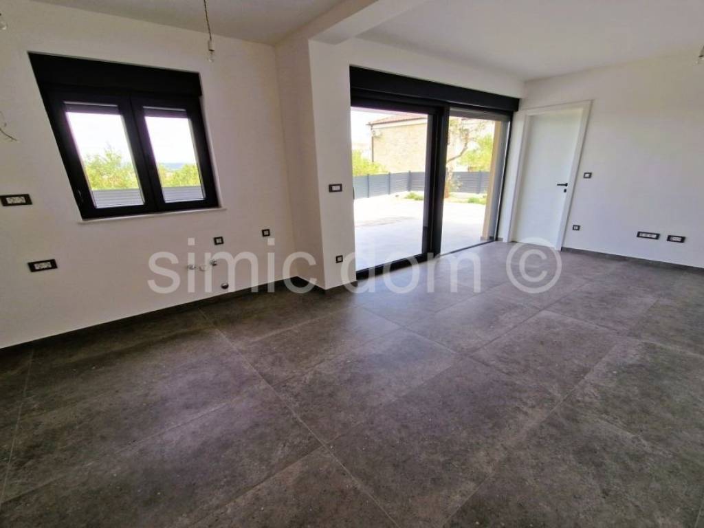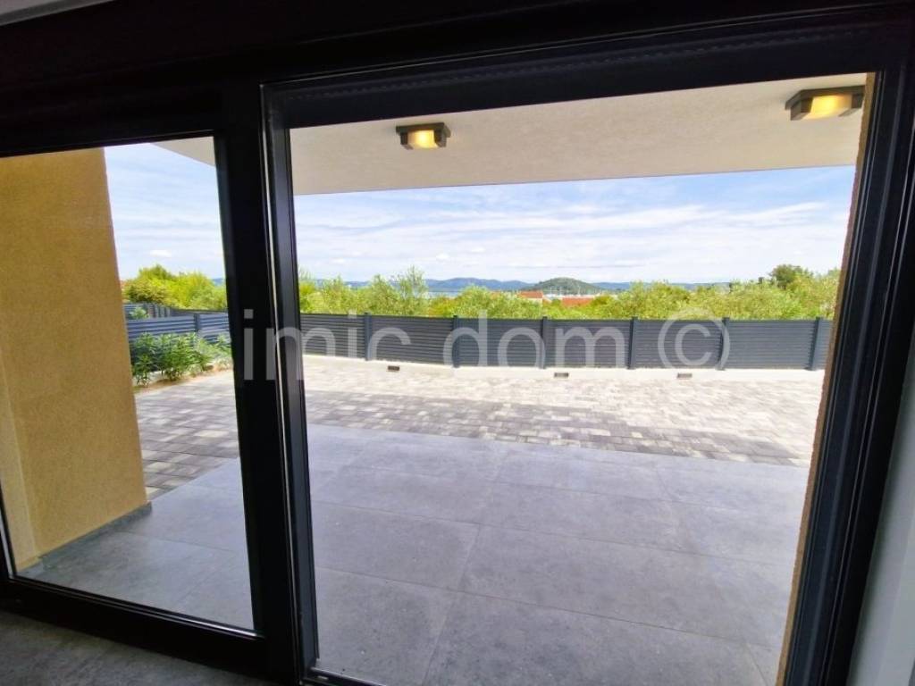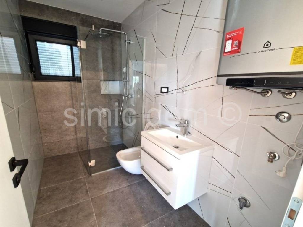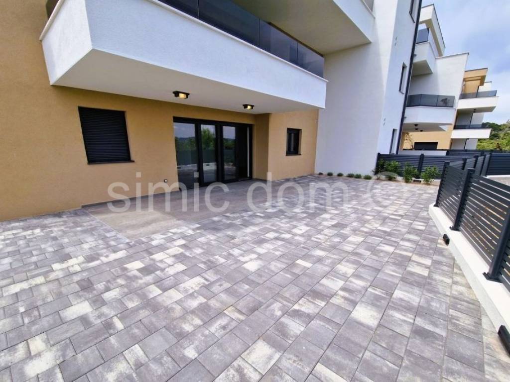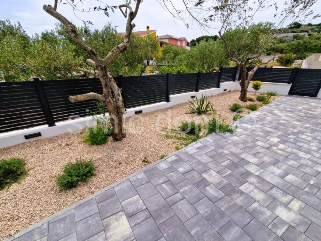 An attractive apartment placed on the ground floor of a new building completed in 2025, for sale in an attractive location in Murter. The building is only 300m from the beautiful pebble beach and the center itself. The apartment has a total net usable area of 79.51 m2 with accessories included and stands out for its functional layout. It consists of a spacious living room with kitchen and dining room, two bedrooms, bathroom, and the living area leads to a spacious paved terrace and courtyard of over 80 m2 with a beautiful view, ideal for enjoying summer evenings. It also has two outdoor parking spaces included in the price. The apartment is full of natural light, and the building is built to a very high quality and guarantees modern construction standards and top energy efficiency, confirmed by the energy certificate A. Security doors provide additional security, while underfloor heating and air conditioning are there for maximum comfort throughout the year. Since it is located in a great location close to all amenities, with a beautiful view and proximity to the sea, the apartment is excellent both for permanent residence and as an investment for tourist rentals. Ownership is in order.