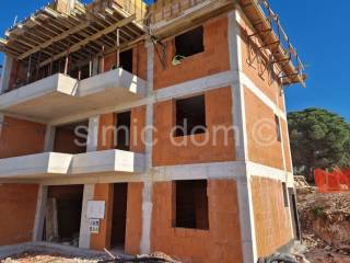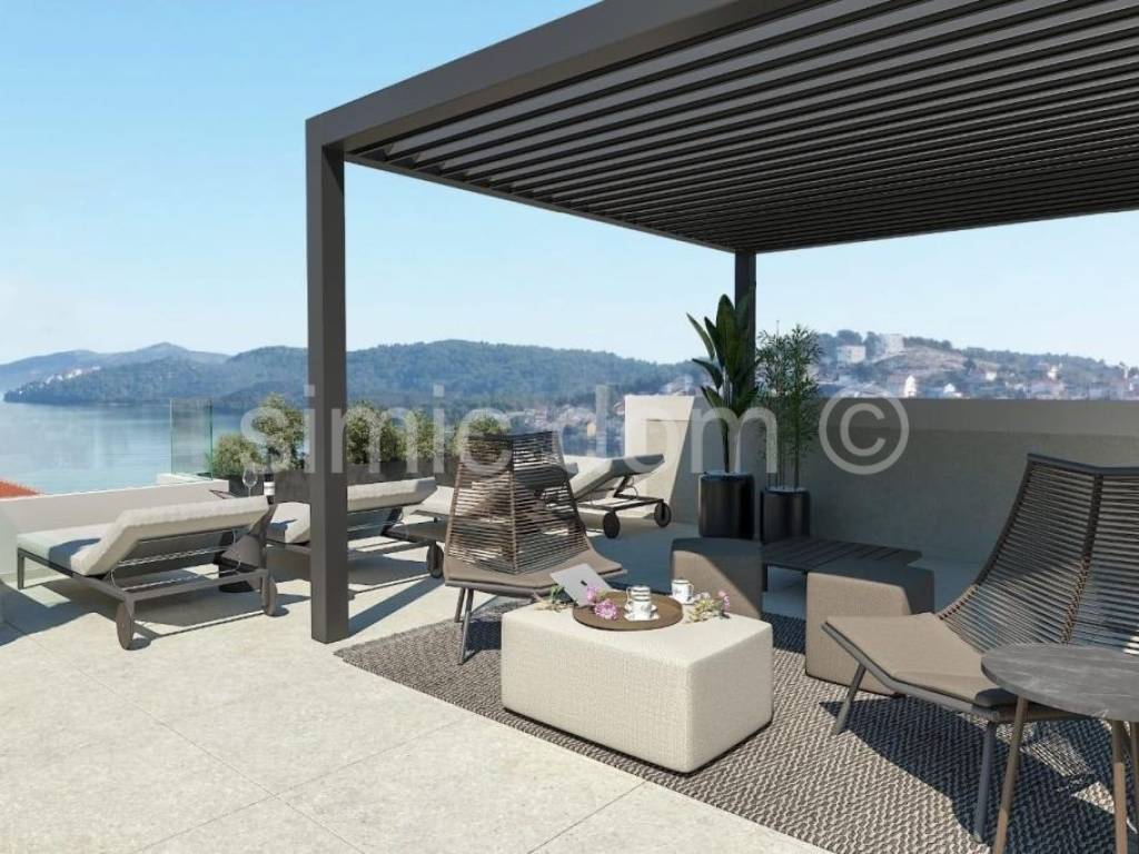 For sale are apartments in a new building located just a two-minute walk from the sea, or 200 m from the popular pebble beach in Okrug. There are other amenities, shops, restaurants and cafes in the immediate vicinity. The penthouse apartment, on the second floor of the building, has a total floor area of 61 m2 and also has a roof terrace of 67 m2 with a beautiful panoramic view. The net usable area with terrace coefficients, the apartment has 73.64 m2. The apartment itself consists of a hallway, bathroom, 2 bedrooms, kitchen and dining room with a living area that leads to the terrace. All apartments will be equipped with air conditioning in all rooms, underfloor heating throughout the apartment (except for the bedrooms for which there is an option to arrange underfloor heating), sliding walls will be aluminium, and the windows will be made of high-quality PVC joinery, with triple glazing, and mosquito nets. Each apartment will also have one outdoor parking space. The planned move-in date is summer 2025.