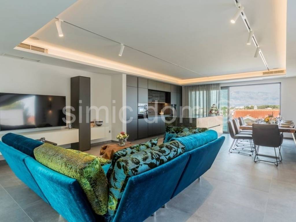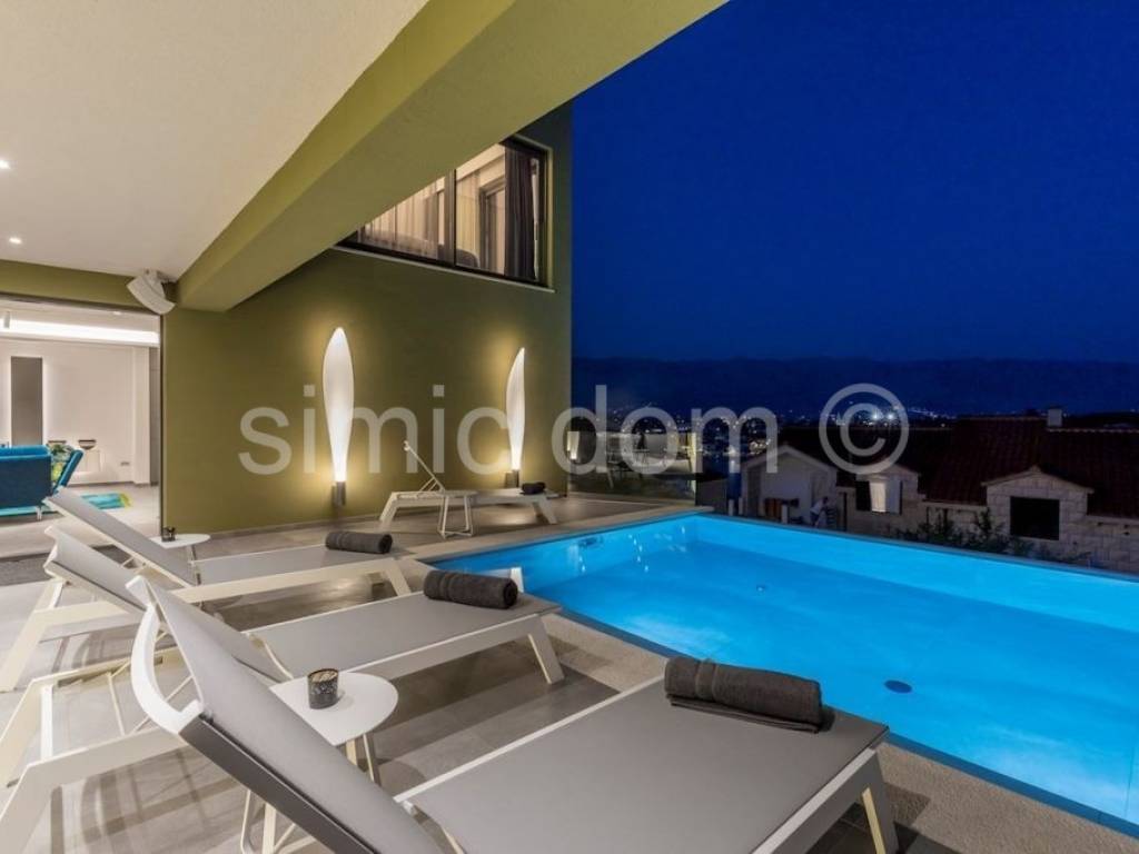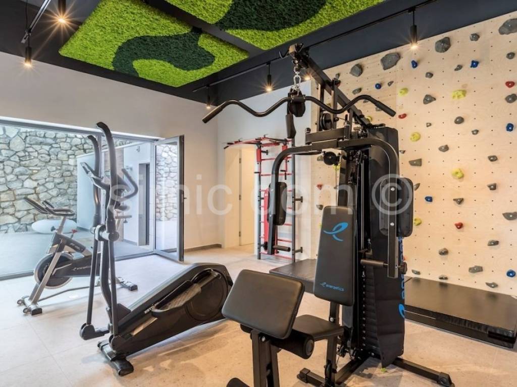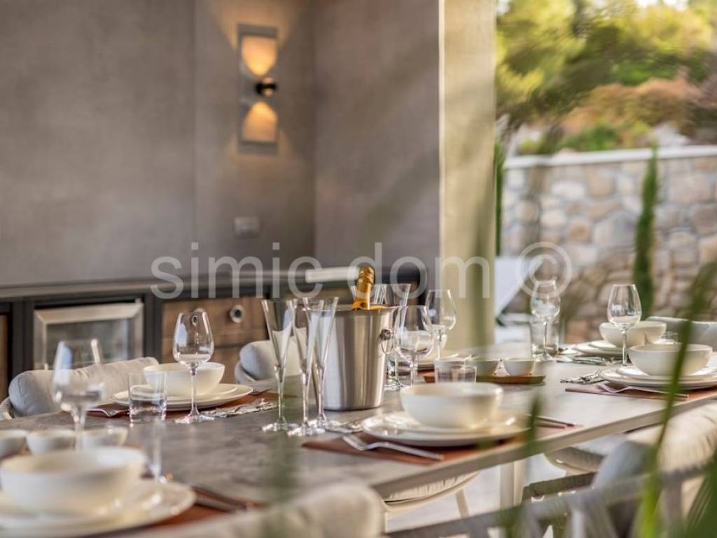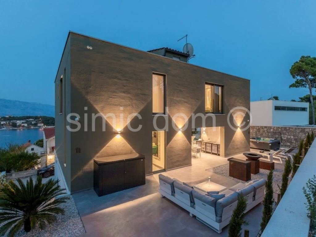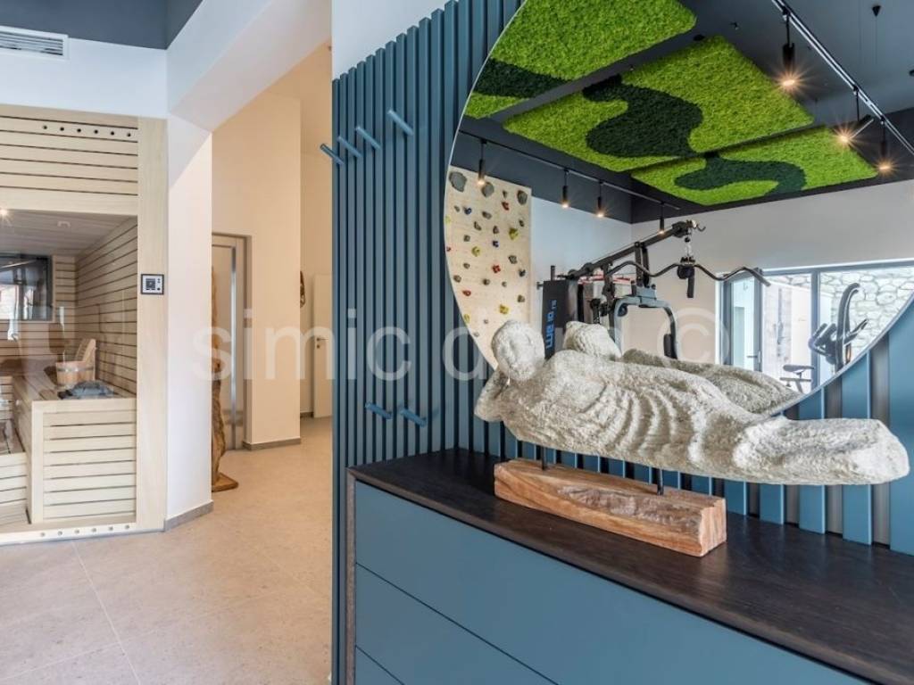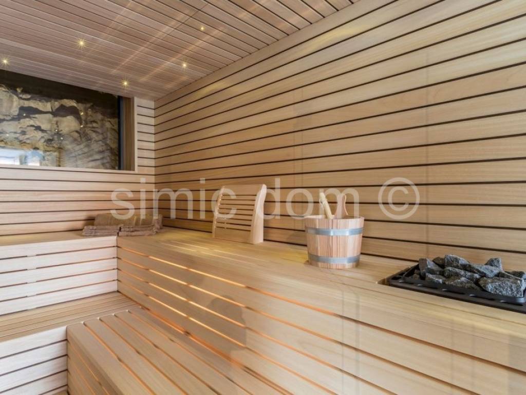We mediate the sale of a modern villa in the charming bay of Puntinak, in the municipality of Selca on the island of Brac. The property is located in a prime location just a few minutes walk from the beach and the town center. The villa itself is built of Brac stone, has a total usable area of 364 m2 and is located on a plot of 560 m2. It has two floors: ground floor and first floor. It has a total of four bedrooms, five bathrooms and one guest toilet. In addition to the internal kitchen with living room placed on the ground floor and from which there is access to the terrace, there is also a summer kitchen, barbecue area, jacuzzi and infinity pool with sundeck and space for rest and relaxation. The villa also has a wellness area consisting of a gym and sauna, and there is a garage right next to the villa. This is an excellent property whose quality of equipment, modern design, very beautiful sea view and excellent location guarantee the profitability and usability of the investment.