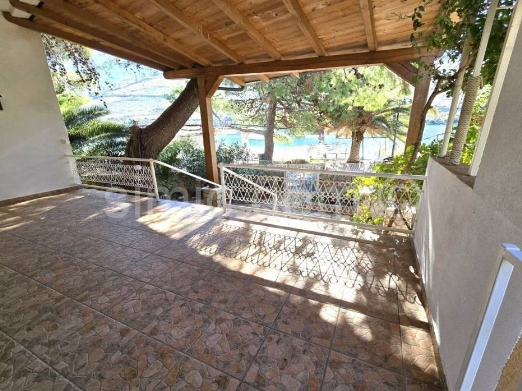 A property with great potential is for sale not far from Sibenik, located just a few steps from the beach. The house is located on a 400 m2 plot with plenty of greenery and natural shade. The house itself consists of a small basement, ground floor and first floor, with a total floor area of 156 m2, of which about 127 m2 of interior space. On the ground floor there is an apartment consisting of a kitchen and dining room, two bedrooms and a bathroom, with an area of approximately 50 m2 and a covered terrace of approximately 17 m2 with a fantastic view of the bay and the beach. On the first floor, which is accessed via a separate entrance, there is an apartment of the same size, with a terrace of 12 m2 with an equally beautiful view of the sea. The house has a basement area of approximately 12 m2, as well as a garage of 15 m2. Natural shade is provided by the greenery and pine trees that have been growing right next to it for years. The spacious garden decorated with Mediterranean plants is abundant in the shade of old pine trees, and there is also a covered lounge of 8 m2, a barbecue, a summer kitchen and outdoor showers. The house has built-in central heating, as well as air conditioning for cooling and heating. The yard provides parking for 5 cars, and the owners also use a boat mooring on the waterfront for a vessel up to approximately 12 meters long in front of the house.