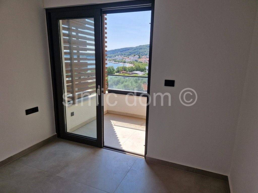 For sale is a modern apartment placed on the second floor of a building with an elevator and it also has an outdoor pool. The apartment consists of a hallway, a bathroom, two bedrooms, a kitchen with a dining room, a living room and a balcony with a beautiful view of the sea. It has one parking space in the garage and a storage room in the basement, as well as the right to use the common roof terrace / walk-through roof. The area of the closed residential part is 43 m2, the balcony is 3 m2, the parking space in the garage is 13.50 m2, and the storage room is 14.86 m2. The building is located in a prime location, not even 50m from the sea and a beautiful pebble beach and close to all necessary facilities, shops, cafes, restaurants. Ownership in order. Slatine is a very quiet place on Ciovo, great for families and children. They have beautiful pebble beaches, all facilities and a direct ferry line with Split.