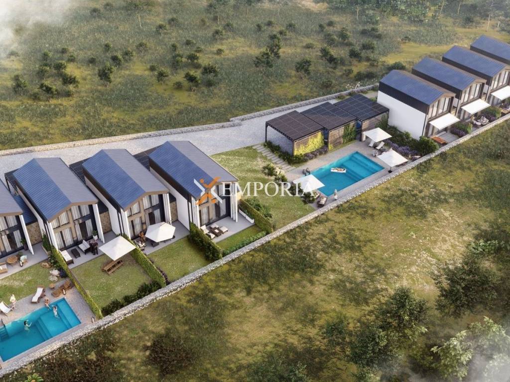 The construction of the house is made of steel with Knauf cladding. Thermal insulation of the facade is 10 cm wool. Floor coverings are tiles and laminate. The windows are made of PVC material with three-layer glass, electric shutters and mosquito nets. Three air conditioners will be installed for heating and cooling of the rooms. In addition, electric underfloor heating on the ground floor and in the bathroom on the first floor.Furthermore, there will be a shared heated swimming pool for 7 houses, with an area of 32 m2. There will also be a shared outdoor grill.The warranty on the house is 50 years.