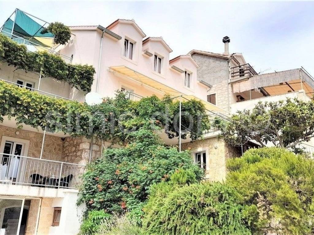 We are mediating the sale of a spacious apartment house located in a quiet bay in the southern part of Hvar and less than 400m from the sea. The house is spread over three floors (ground floor, first floor and attic) and offers several apartments with a total of 8 bedrooms and 5 bathrooms. The living area is 230m2. At the level of the high ground floor, there is a beautiful terrace with a view, and its traditional decoration gives off a real impression of Hvar. The property also offers a parking area. The house is equipped for tourist rental, well maintained and offers a number of possibilities for use. Considering the peace of this location, the beautiful view, the excellent condition and the possibility of renting, this house is an ideal investment opportunity. Ownership in order.