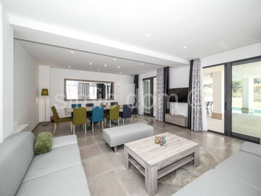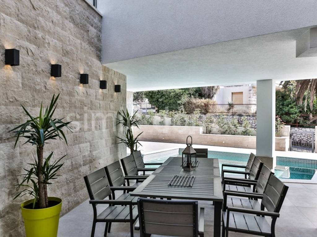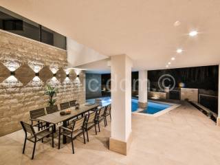 We are selling a luxury newly built villa with swimming pool on Ciovo island, in an excellent location near the sea and the center of Trogir. The villa is modernly and elegantly decorated, equipped with all the necessary amenities and luxurious furnishings to ensure a relaxing and enjoyable stay. The villa was built on a plot of 600 sqm and has a total surface area of 360 sqm, built with high quality materials. It consists of four floors a basement level, a ground floor, the first and the second floor, with a total of seven spacious bedrooms, eight bathrooms, several terraces, a gym, a sauna and a jacuzzi. The villa is designed to provide a large amount of light throughout the day. You can also enjoy a beautifully landscaped garden with a spacious swimming pool, loungers and barbecue. The yard features a parking lot for four cars.